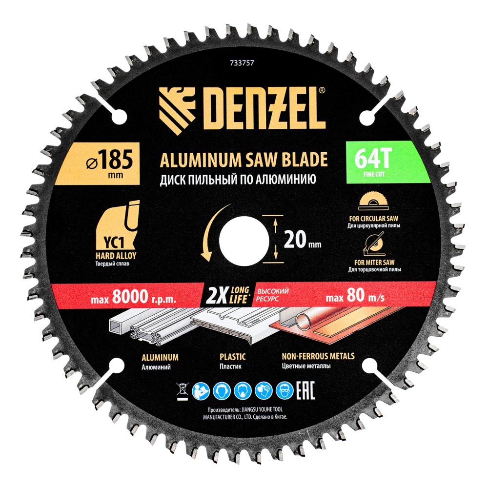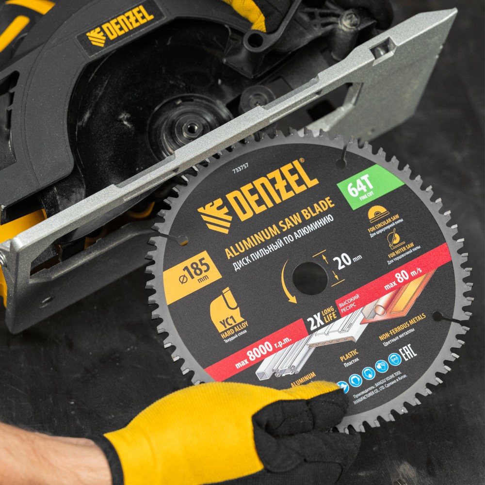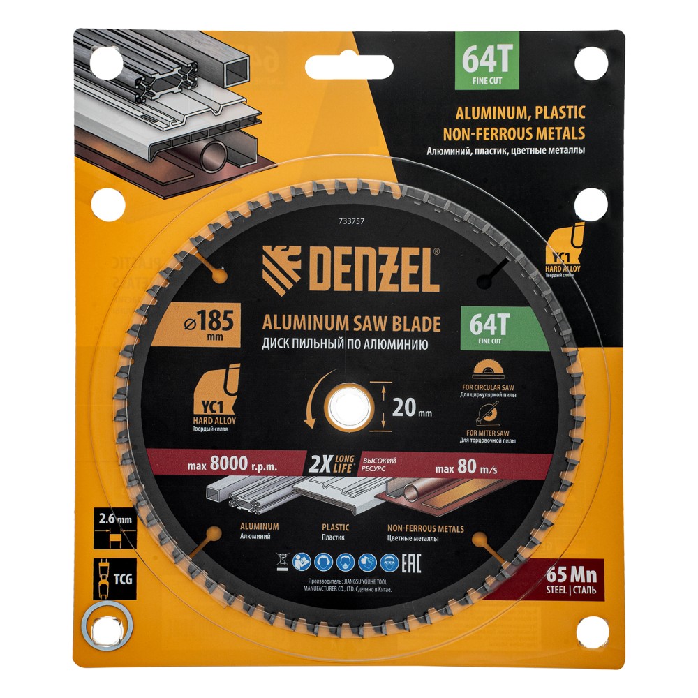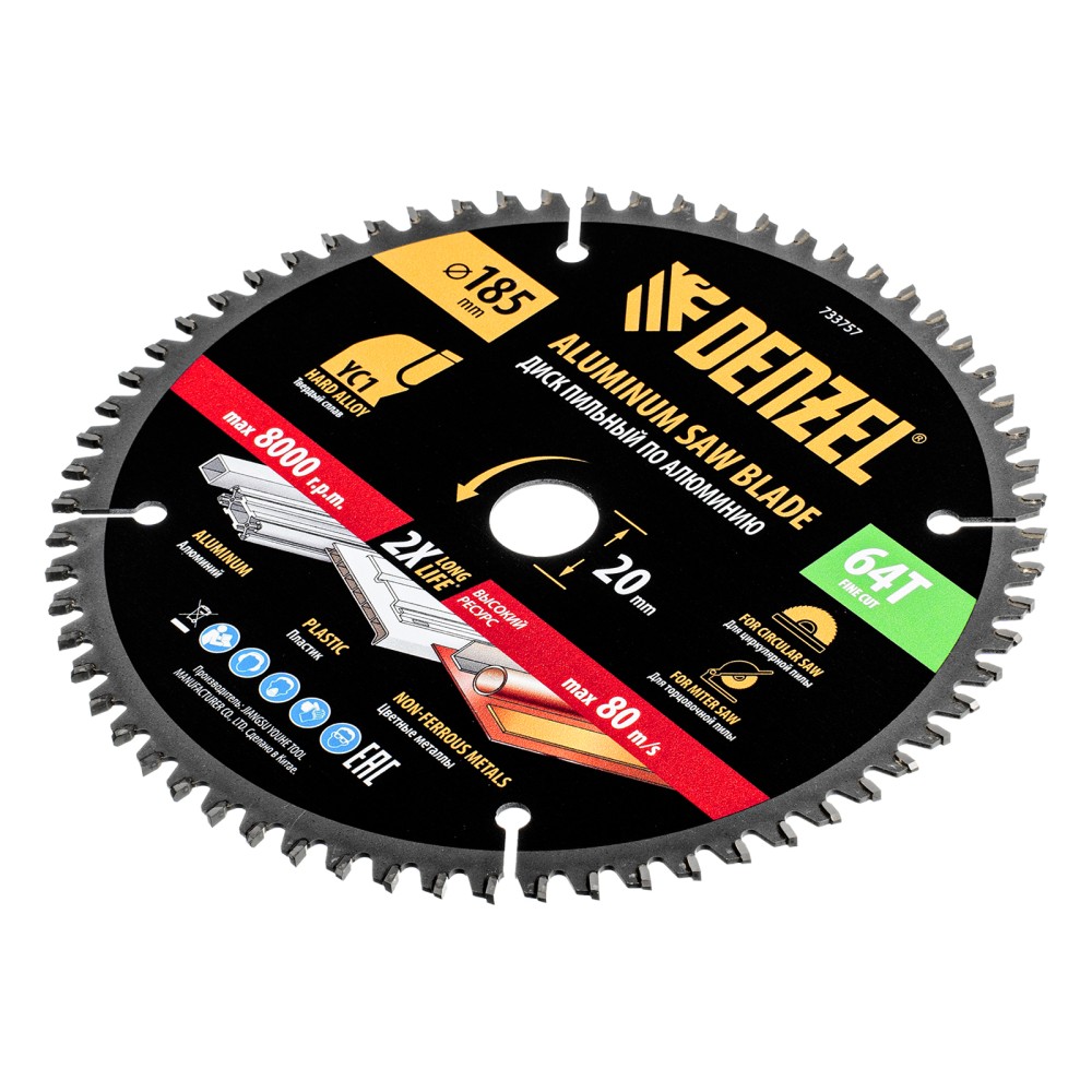 Пильный диск Denzel 733757 диаметром 185 x 20 мм, с 64 зубьями, предназначен для точного распиливания заготовок из алюминия, пластика, цветных металлов. Устанавливается на циркулярную или торцовочную пилу, также возможно использование с распиловочным станком. Зубья трапециевидно-плоского типа (TCG) с отрицательным углом заточки обеспечивают ровный рез без сколов. В комплект поставки входит переходное кольцо 20/16 мм, позволяющее изменить посадочный диаметр при необходимости.ПреимуществаНадежность — термически обработанная основа из пружинной стали 65Mn выдерживает высокие динамические нагрузки без риска деформации.Эффективность — режущая часть из твердого сплава YC1, прошедшая многоступенчатую заточку, позволяет успешно справляться с прочными материалами.Высокое качество реза — компенсационные прорези снижают вибрации, рабочая часть с мелкими зубьями обеспечивает получение чистой кромки без заусенцев.Прочность — твердосплавные пластины надежно зафиксированы при помощи термостойкого припоя с повышенным содержанием серебра.Коррозионная стойкость — покрытый защитным лаком корпус и никелированное переходное кольцо устойчивы к разрушению.