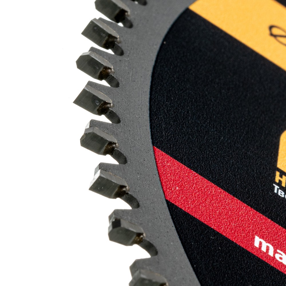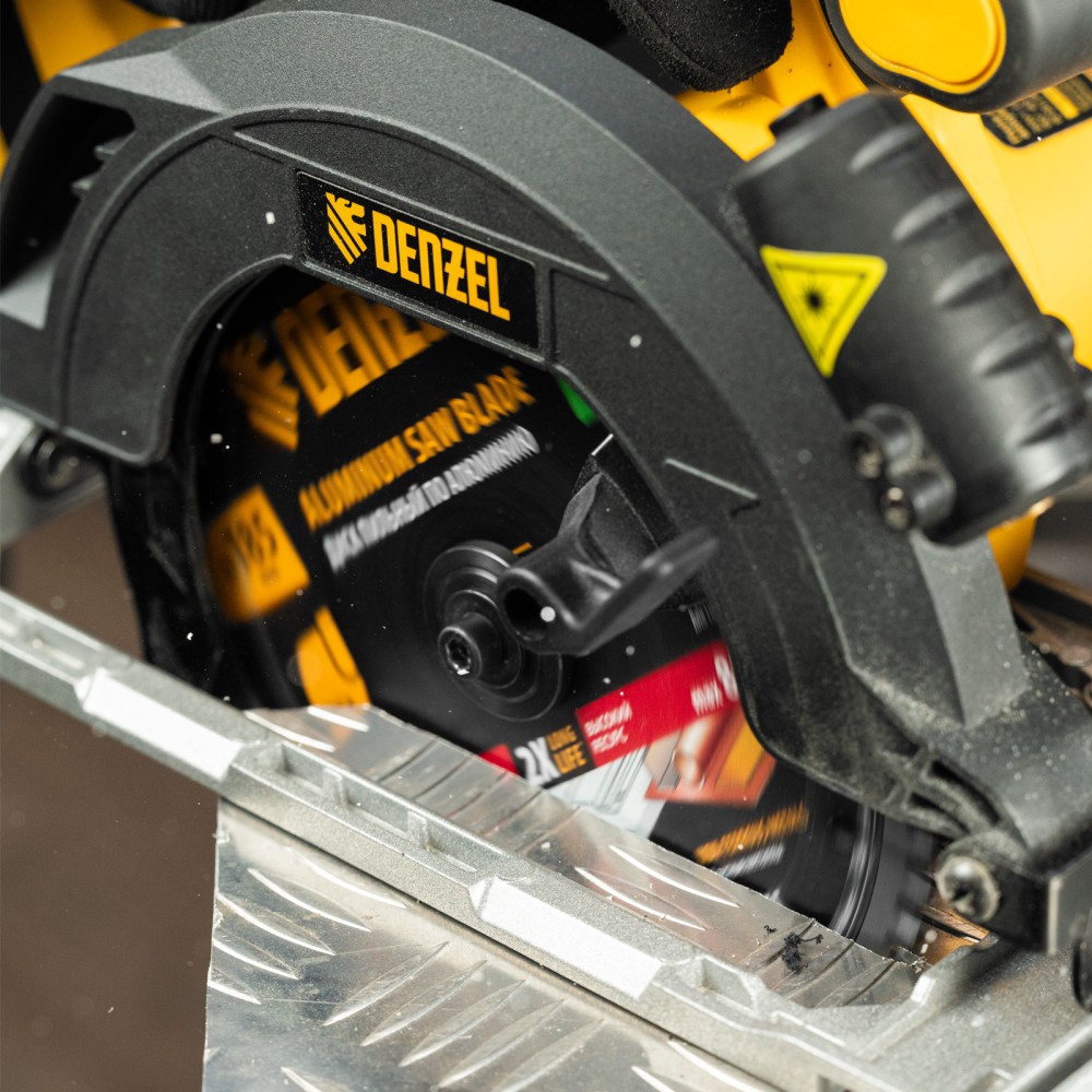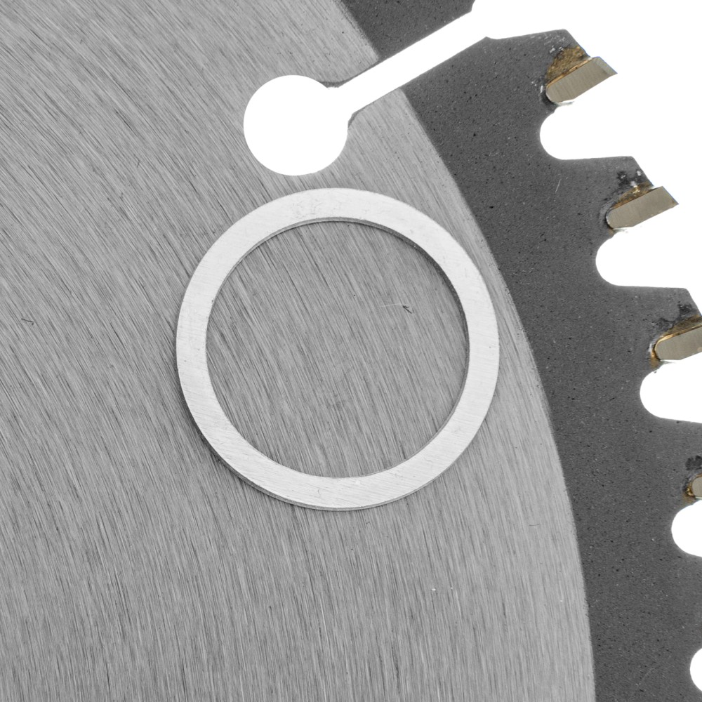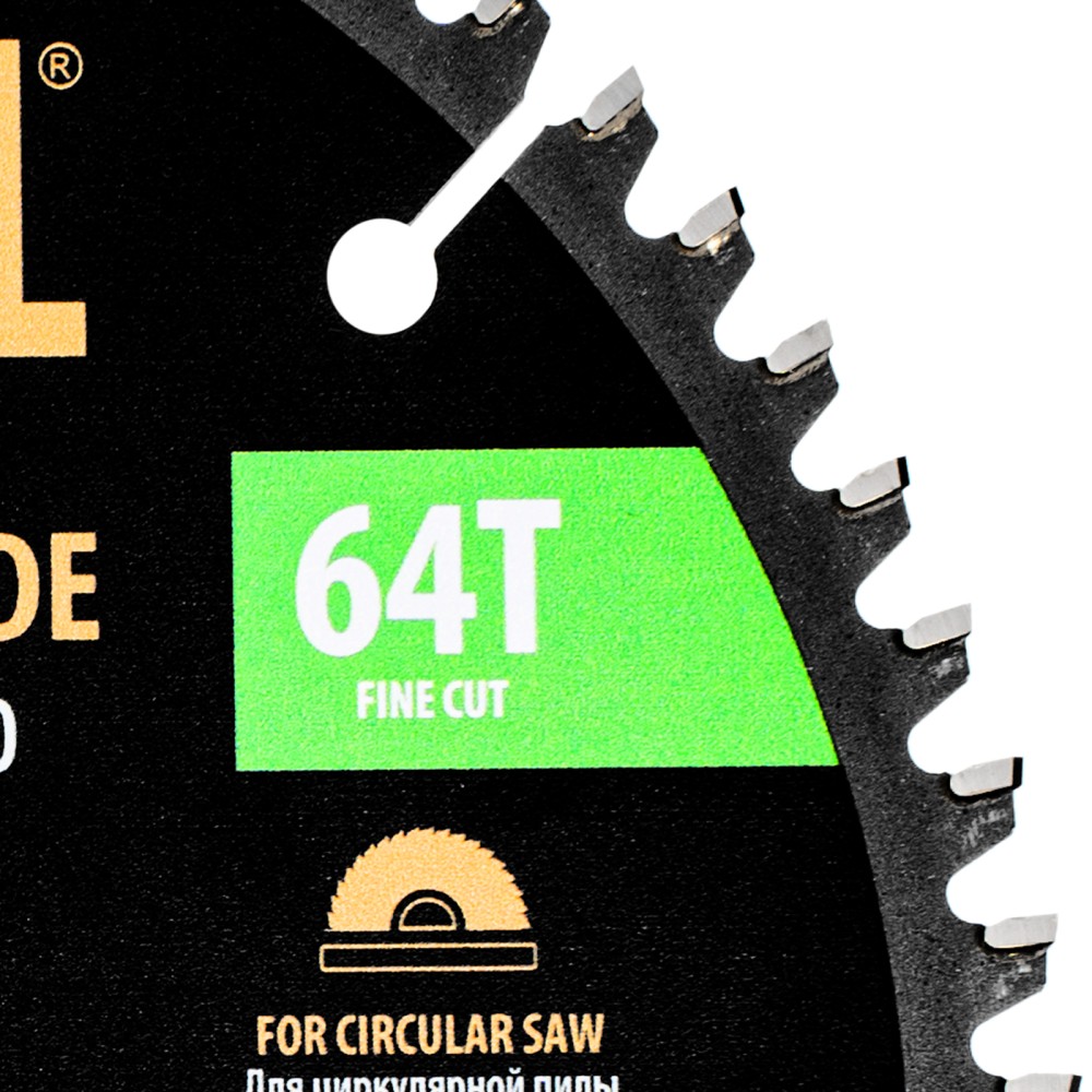 Пильный диск Denzel 733757 диаметром 185 x 20 мм, с 64 зубьями, предназначен для точного распиливания заготовок из алюминия, пластика, цветных металлов. Устанавливается на циркулярную или торцовочную пилу, также возможно использование с распиловочным станком. Зубья трапециевидно-плоского типа (TCG) с отрицательным углом заточки обеспечивают ровный рез без сколов. В комплект поставки входит переходное кольцо 20/16 мм, позволяющее изменить посадочный диаметр при необходимости.ПреимуществаНадежность — термически обработанная основа из пружинной стали 65Mn выдерживает высокие динамические нагрузки без риска деформации.Эффективность — режущая часть из твердого сплава YC1, прошедшая многоступенчатую заточку, позволяет успешно справляться с прочными материалами.Высокое качество реза — компенсационные прорези снижают вибрации, рабочая часть с мелкими зубьями обеспечивает получение чистой кромки без заусенцев.Прочность — твердосплавные пластины надежно зафиксированы при помощи термостойкого припоя с повышенным содержанием серебра.Коррозионная стойкость — покрытый защитным лаком корпус и никелированное переходное кольцо устойчивы к разрушению.