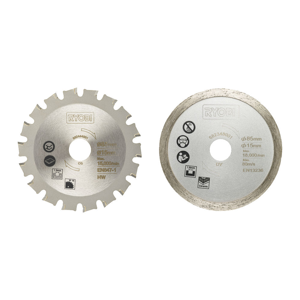 - Для R18MMS-0. Наружный диаметр 85мм, посадочное отверстие 15мм. Подходит для универсальных пил других брендов.