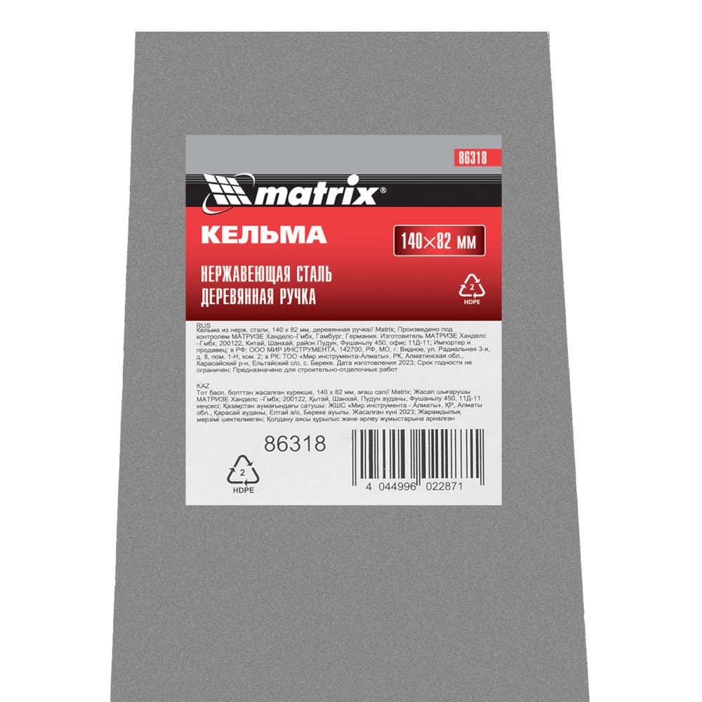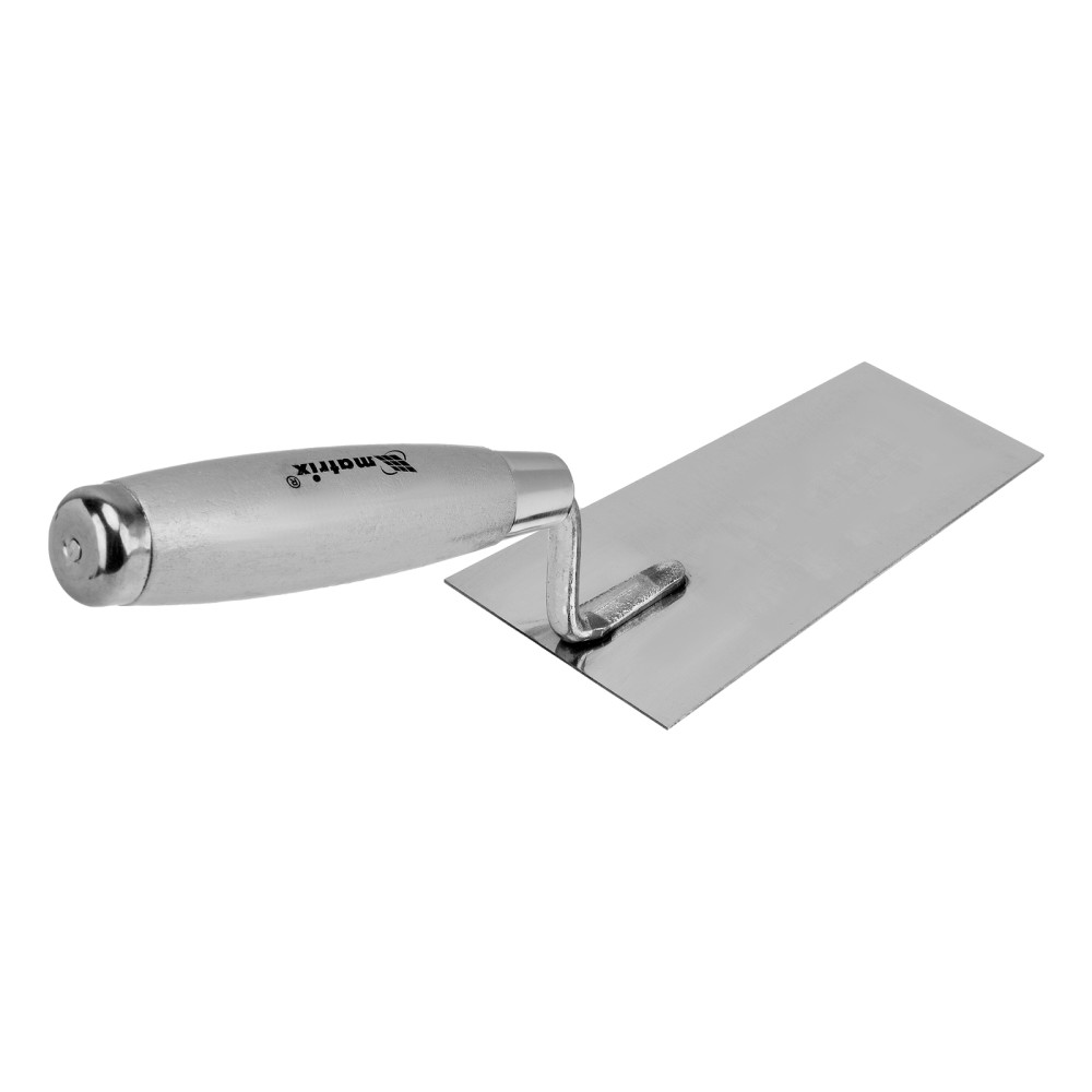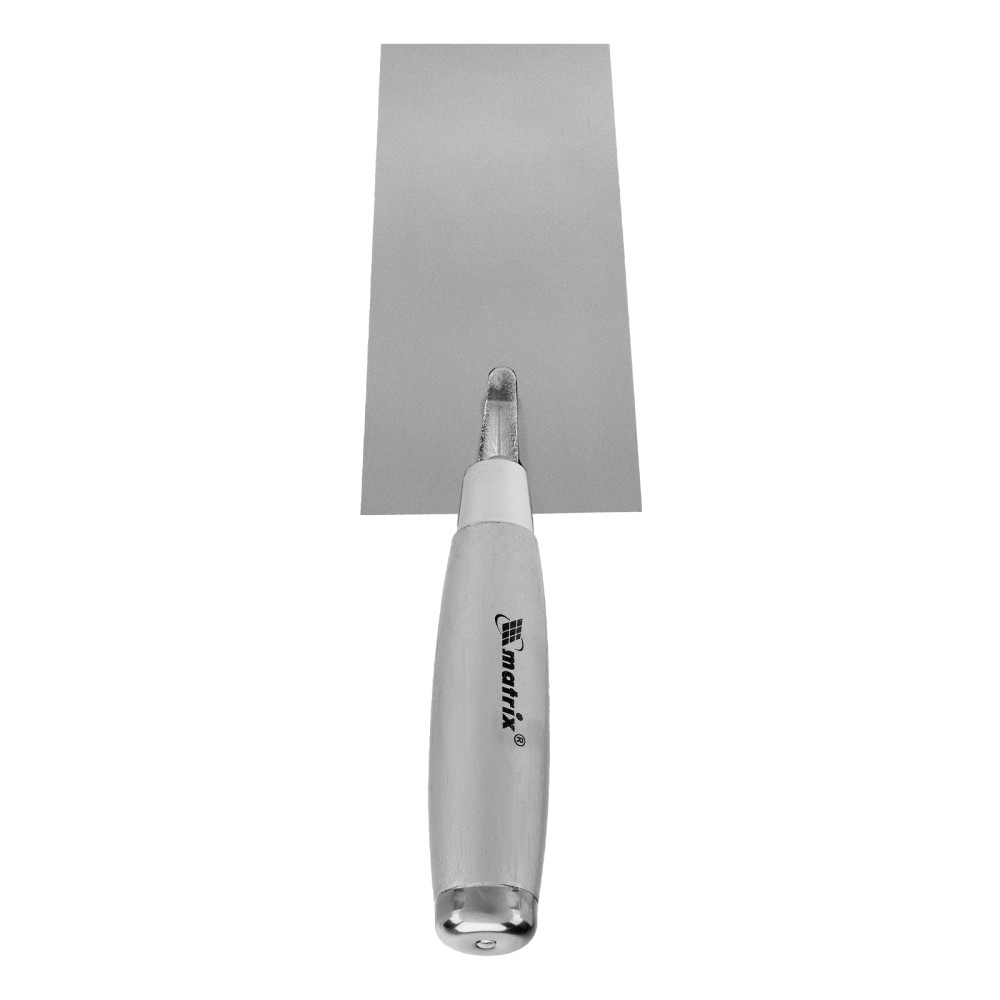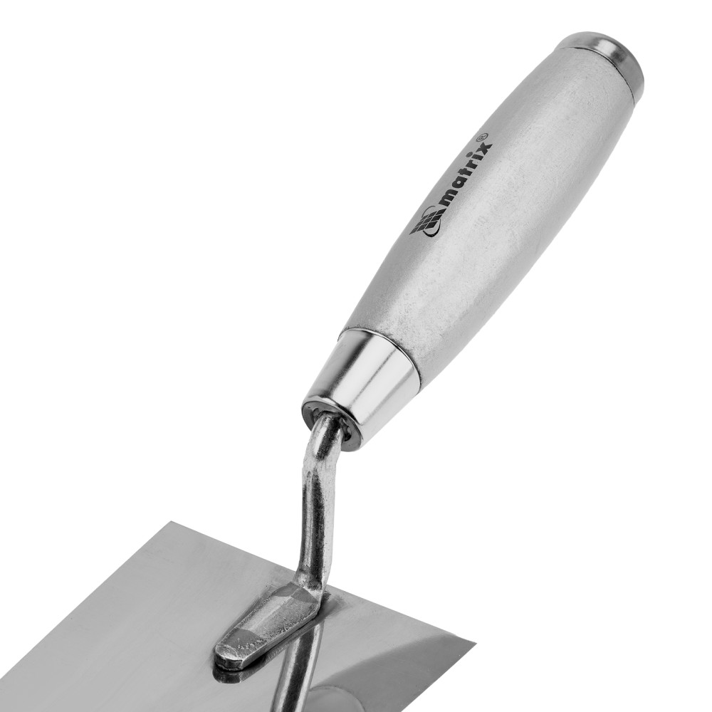 Кельма Matrix 86318 с трапециевидным полотном 140 х 82 мм из нержавеющей стали, с деревянной ручкой, применяется для проведения отделочных работ с использованием строительных гипсовых или цементных растворов. Ей удобно отмеривать и укладывать штукатурные смеси. Инструмент пригодится как начинающему мастеру, так и профессионалу.ПреимуществаНадежность — полотно из нержавеющей стали устойчиво к коррозии и воздействию агрессивных веществ.Удобная эксплуатация — благодаря зеркальной полировке к полотну не прилипает раствор.Металлический затыльник — можно простукивать плитку для корректировки ее положения и лучшей усадки.Долговечность — прочное соединение рукоятки с полотном выдерживает интенсивную эксплуатацию.Высокая производительность — широкое полотно позволяет накидывать большое количество раствора за один раз.Удобный хват — деревянная рукоятка не выскальзывает из ладони.Малый вес 183 г — даже длительная работа не вызывает дискомфорт.