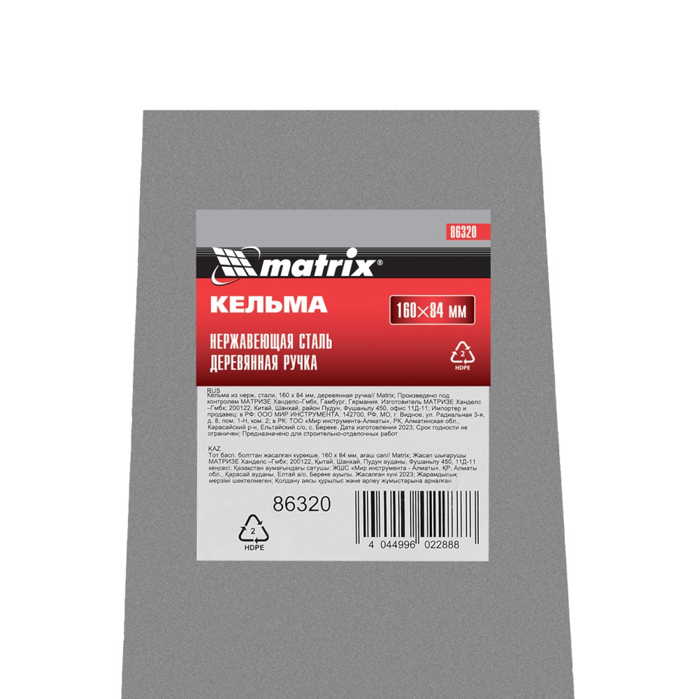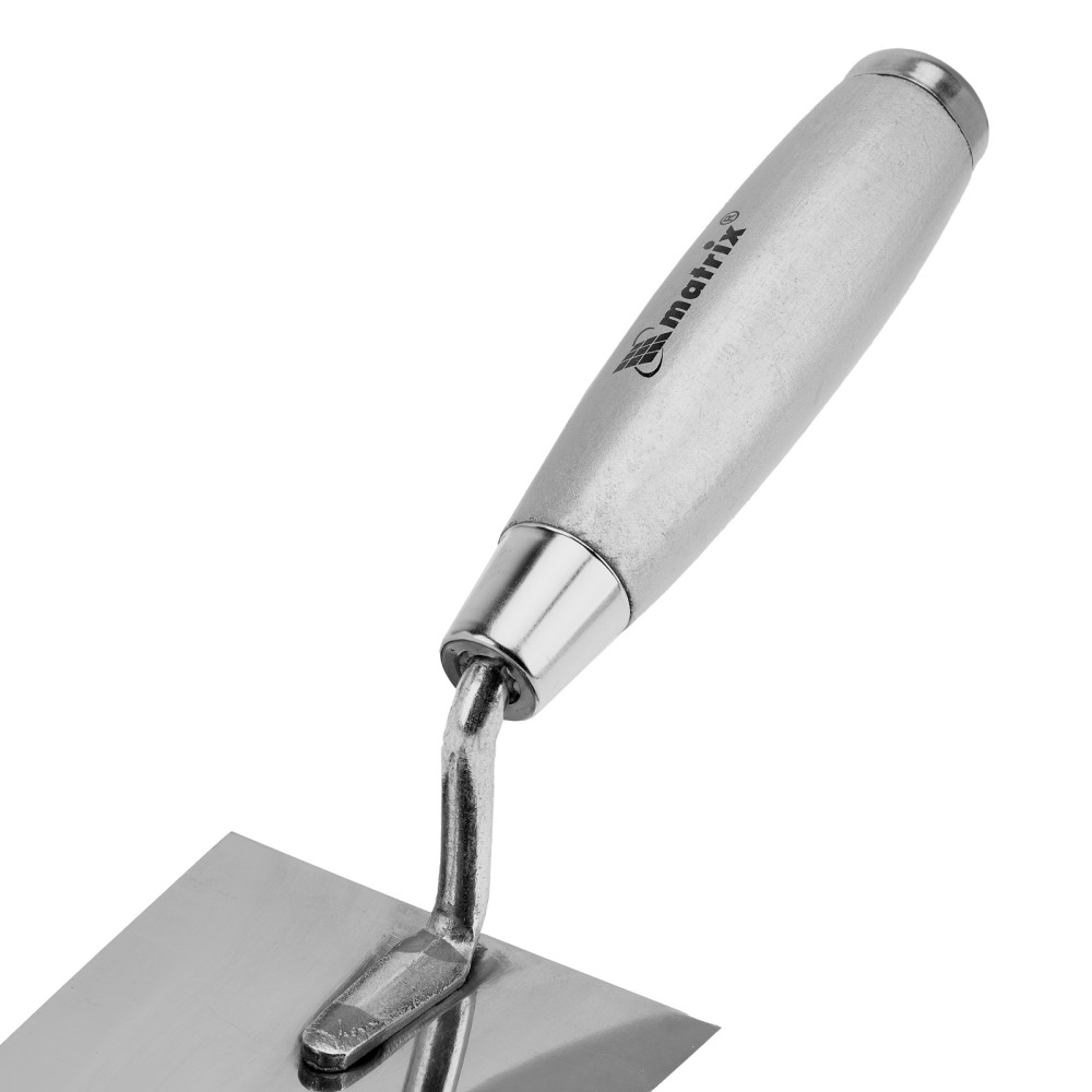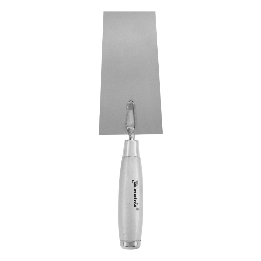 Кельма Matrix 86320 с трапециевидным полотном 160 х 84 мм из нержавеющей стали, с деревянной ручкой, применяется для проведения отделочных работ с использованием строительных гипсовых или цементных растворов. Ей удобно отмеривать и укладывать штукатурные смеси. Инструмент пригодится как начинающему мастеру, так и профессионалу.ПреимуществаНадежность — полотно из нержавеющей стали устойчиво к коррозии и воздействию агрессивных веществ.Удобная эксплуатация — благодаря зеркальной полировке к полотну не прилипает раствор.Металлический затыльник — можно простукивать плитку для корректировки ее положения и лучшей усадки.Долговечность — прочное соединение рукоятки с полотном выдерживает интенсивную эксплуатацию.Высокая производительность — широкое полотно позволяет накидывать большое количество раствора за один раз.Удобный хват — деревянная рукоятка не выскальзывает из ладони.Малый вес 200 г — даже длительная работа не вызывает дискомфорт.