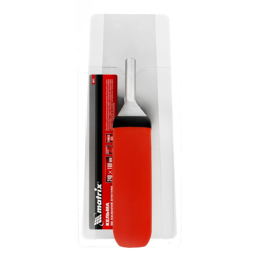 Кельма Matrix 86812 с трапециевидным полотном 240 х 100 мм из нержавеющей стали и двухкомпонентной рукояткой используется для финишной отделки стен с помощью венецианской штукатурки. Применяется также с другими декоративными смесями на минеральной основе, с содержанием мелких наполнителей, каменной муки и т.д. Кельма позволяет создать покрытие с эффектной текстурой, удобна для обработки участков большой площади.ПреимуществаПрочность и долговечность — полотно из нержавеющей стали устойчиво к повреждениям, коррозии и воздействию агрессивных веществ.Высокое качество проводимых работ — идеально прямое полотно со скругленными углами плотно прилегает к поверхности, позволяя наносить штукатурку ровным и тонким слоем.Комфортная и эффективная работа — полотно тщательно отполировано, к его зеркальной поверхности не прилипает смесь.Эргономичность — двухкомпонентная рукоятка удобно и надежно лежит в руке.