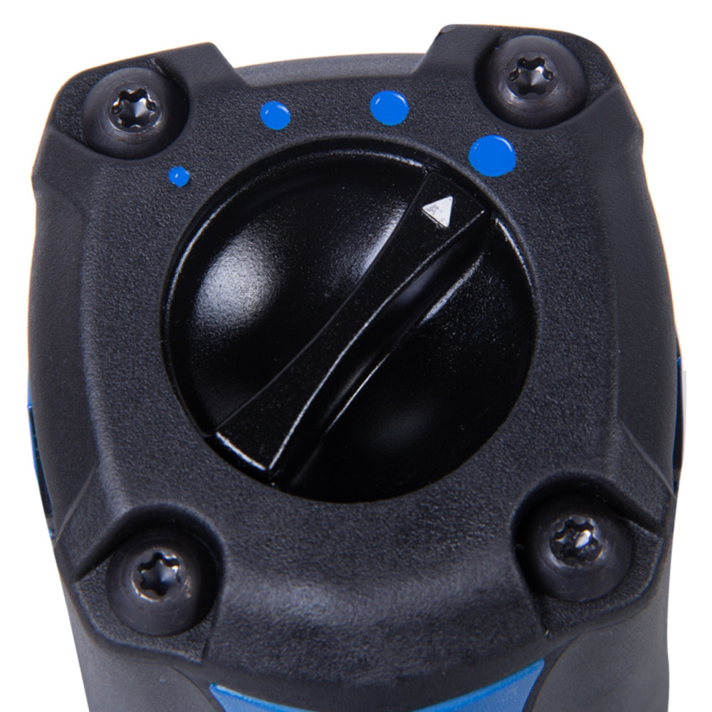 Корпус гайковёрта – прочный алюминиевый сплав. Эргономичная рукоятка гайковёрта в сочетании с отличной сбалансированностью позволяет надёжно держать инструмент в руке во время работы.