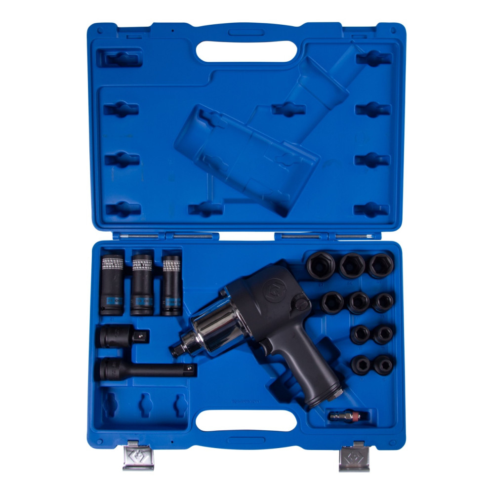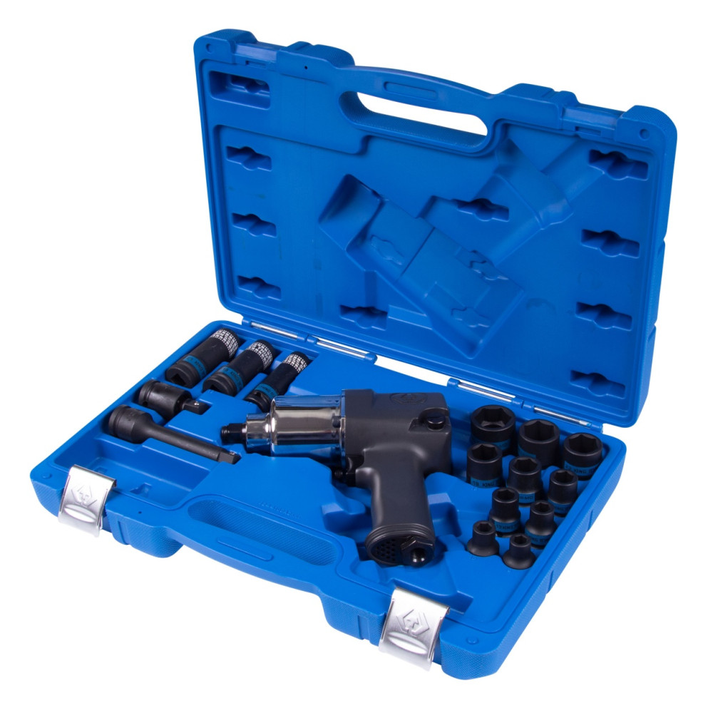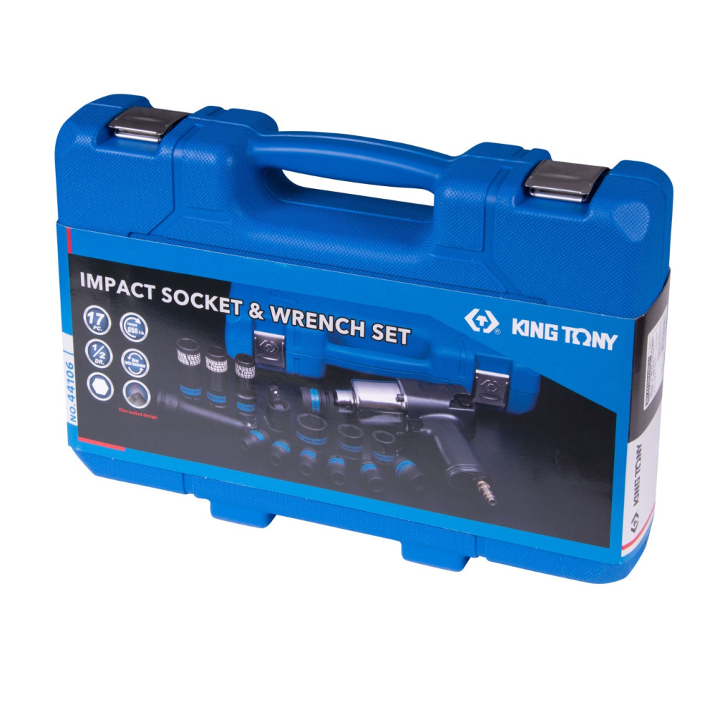 KING TONY Гайковерт пневматический ударный 1/2", 881 Нм, с комплектом головок, 17 предметов