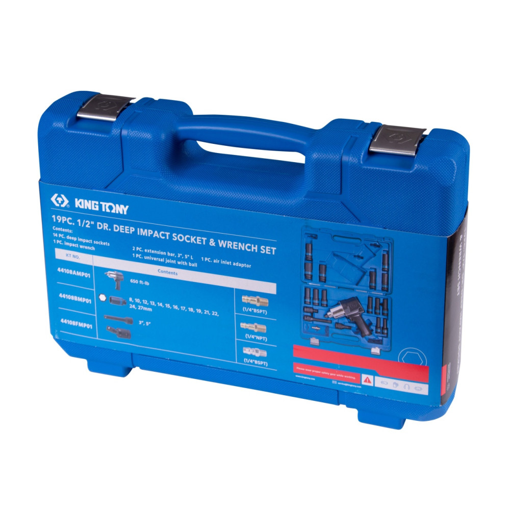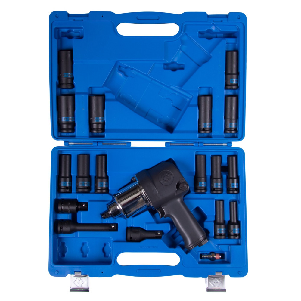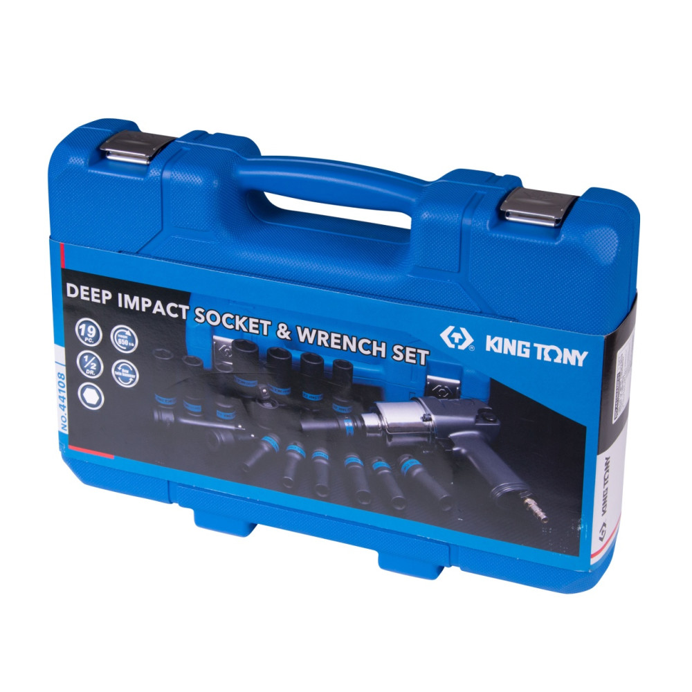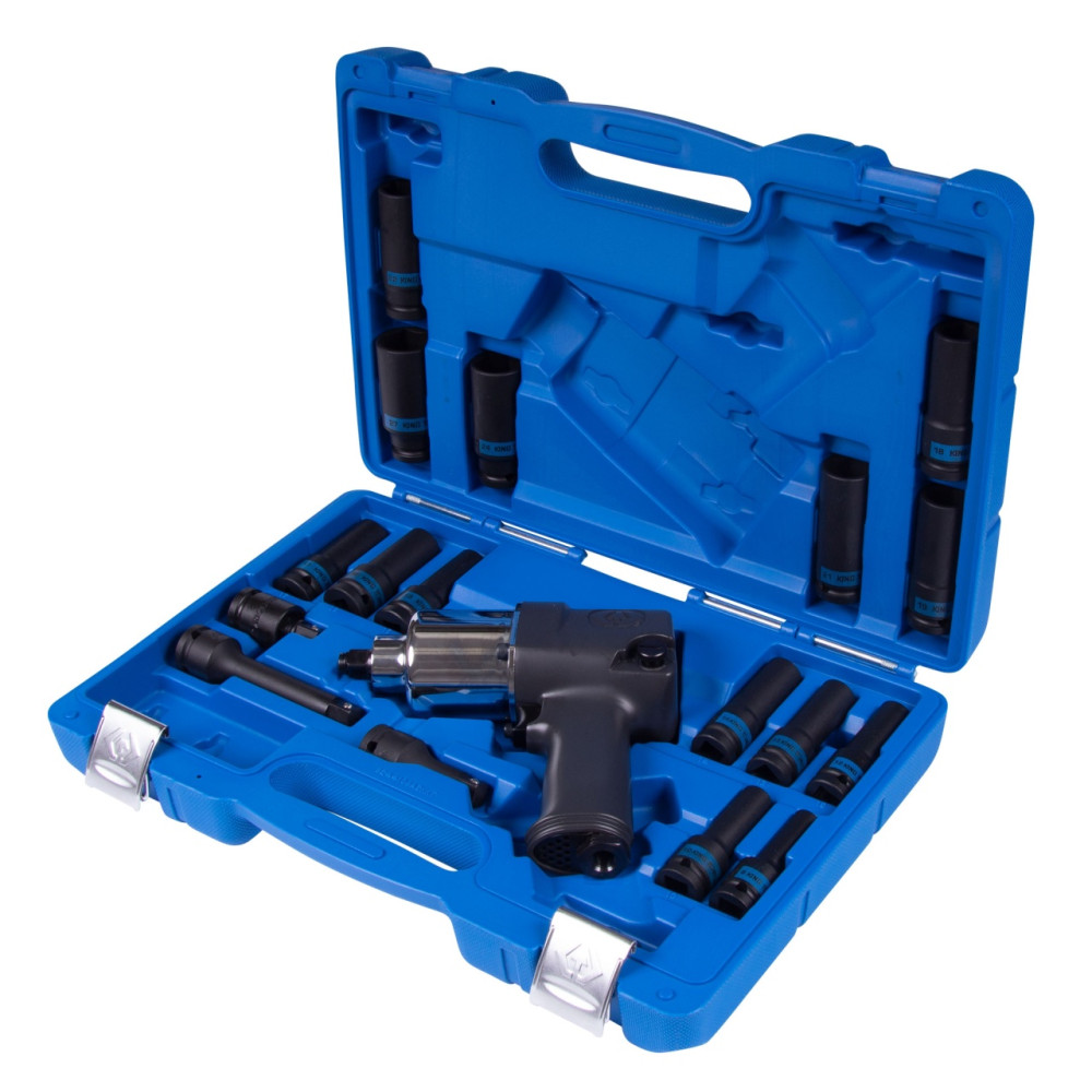 KING TONY Гайковерт пневматический ударный 1/2", 881 Нм, с комплектом головок, 19 предметов