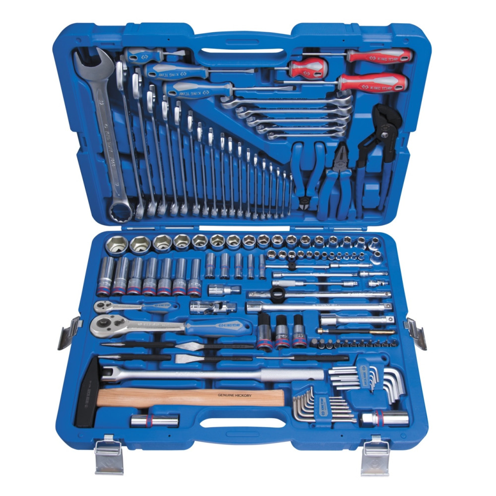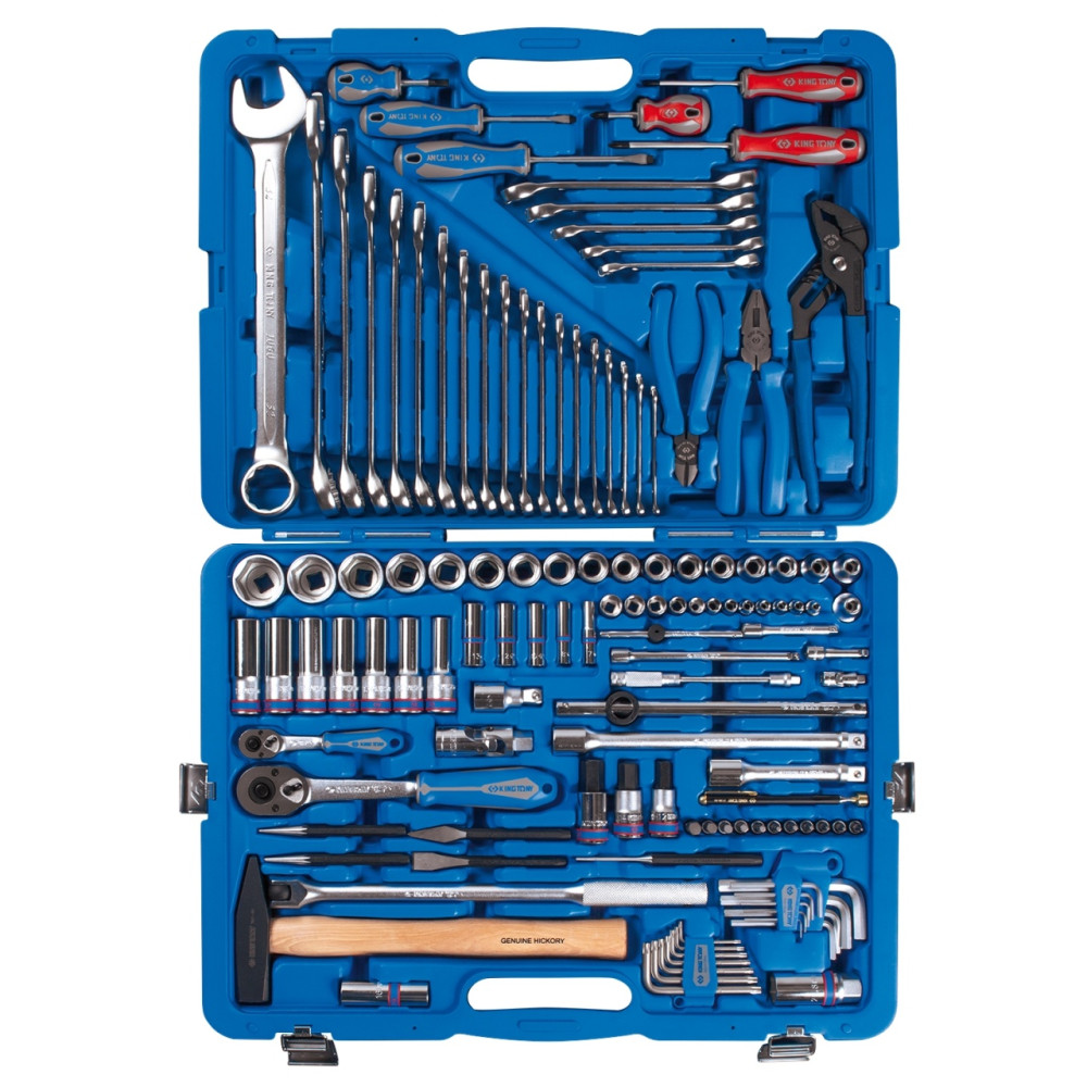 Материалы – инструментальные стали Cr-V, Cr-Mo, SNCM+V (S2), конструкционная сталь, хром, пластик PP (держатели), вспененный PVC (рукоять захвата), PP+TPR (рукояти отверток, трещоток, шарнирно-губцевого инструмента), дерево (рукоять молотка)