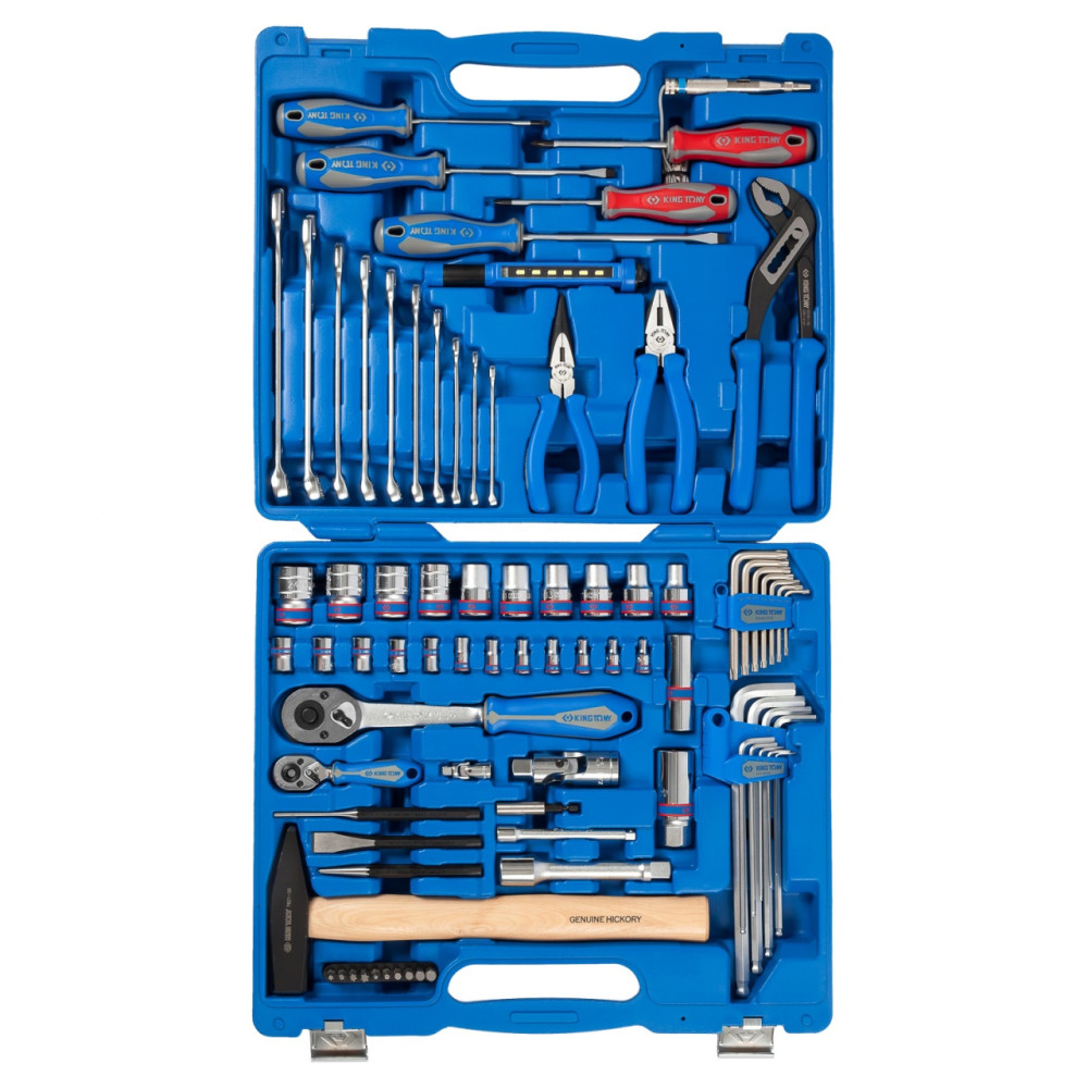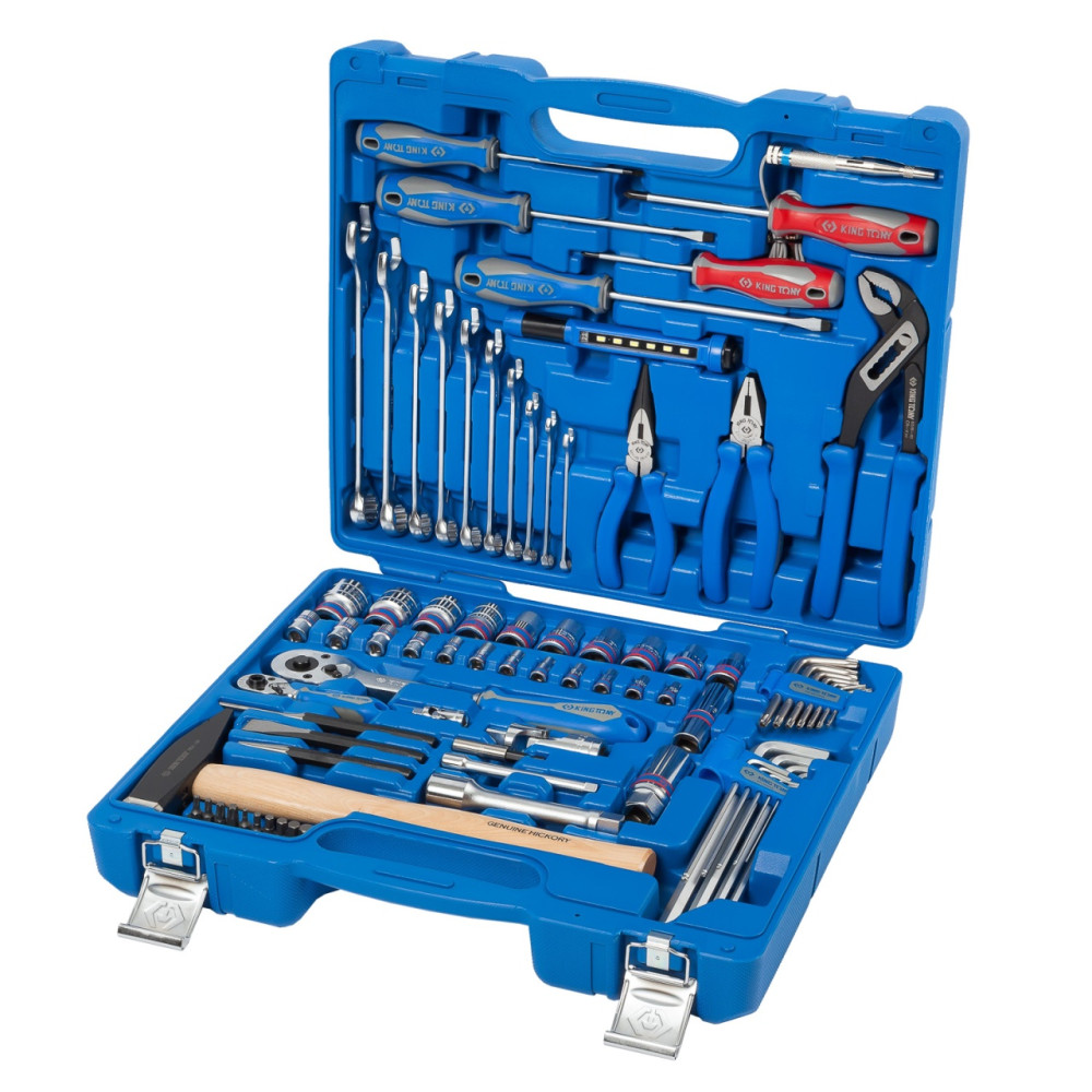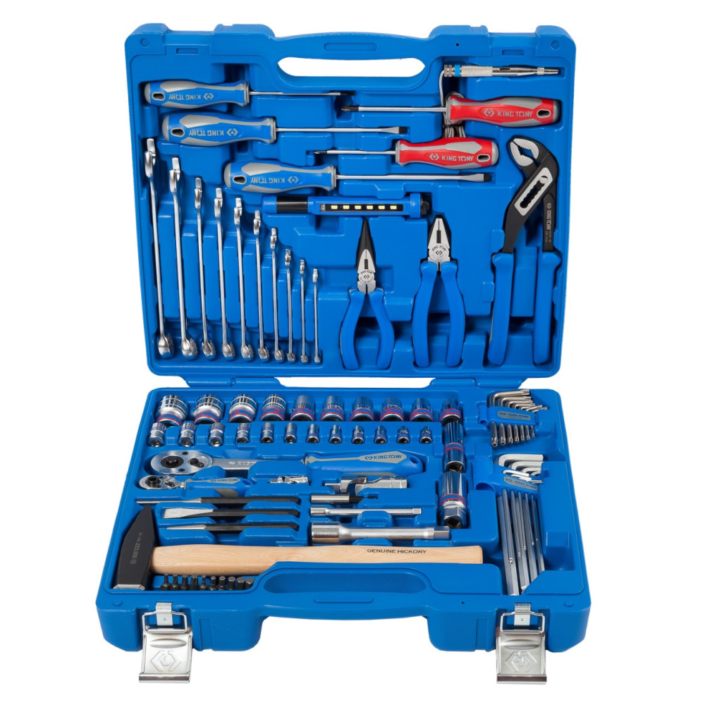 Материалы – инструментальные стали Cr-V, Cr-Mo, SNCM+V (S2), конструкционная сталь, хром, PP+TPR (рукояти отверток, трещоток, шарнирно-губцевого инструмента), дерево (рукоять молотка)