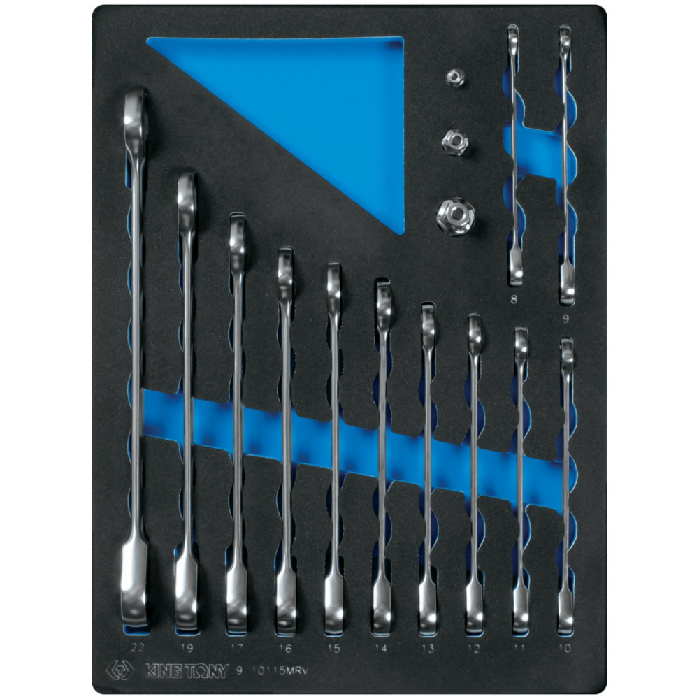 Набор комбинированных трещоточных ключей, 8-22 мм, ложемент, 15 предметов KING TONY 9-10115MRV
