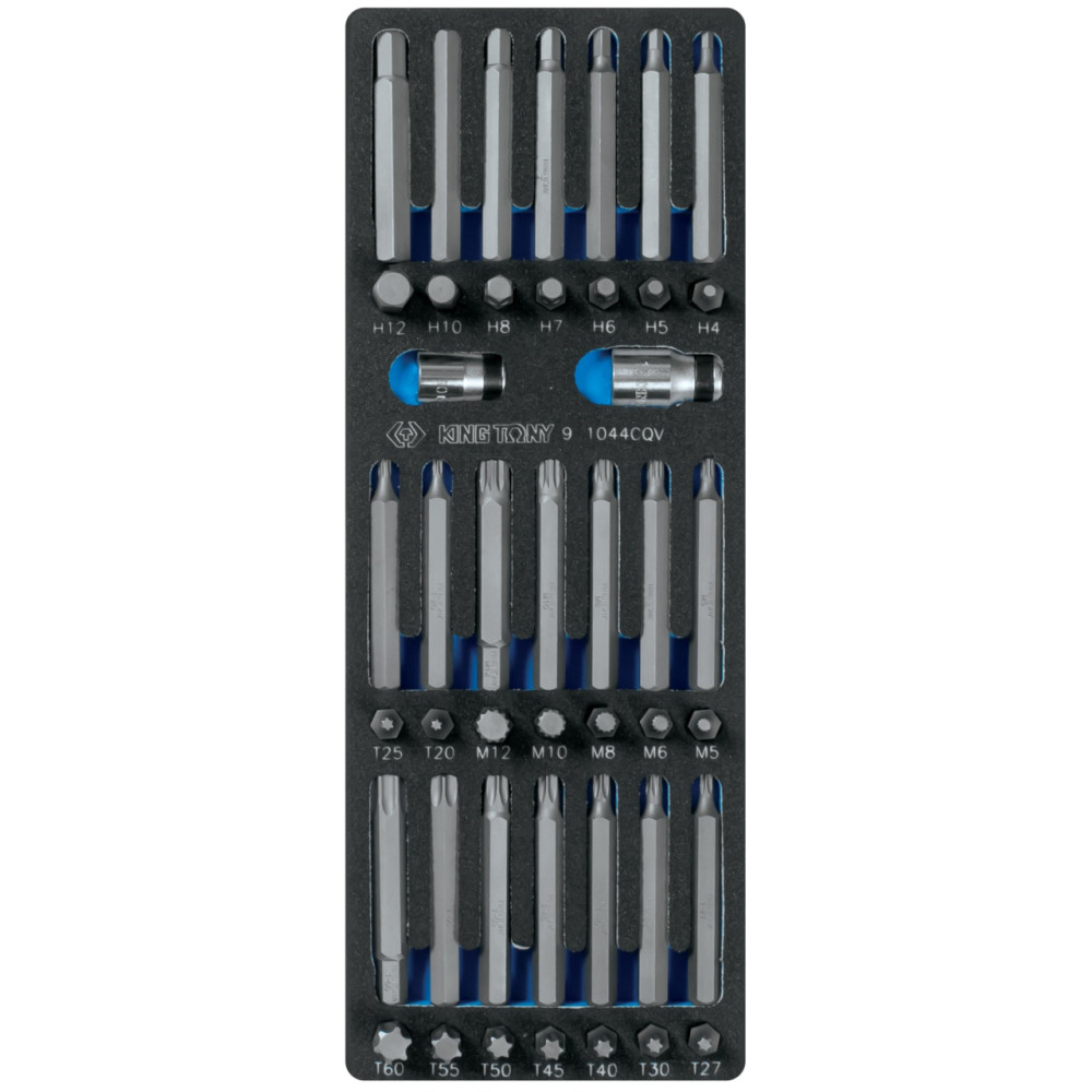 Набор вставок (бит) 10 мм, Torx, Spline, Hex, ложемент, 44 предмета KING TONY 9-1044CQV