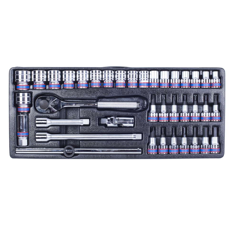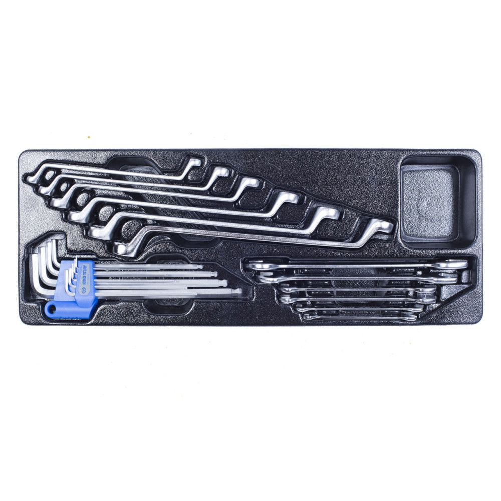 Материалы – инструментальные стали Cr-V, Cr-Mo, SNCM+V (S2), конструкционная сталь, хром, пластик PP (держатели), PP+TPR (рукояти отверток, трещоток, шарнирно-губцевого инструмента), PVC (ложементы)
