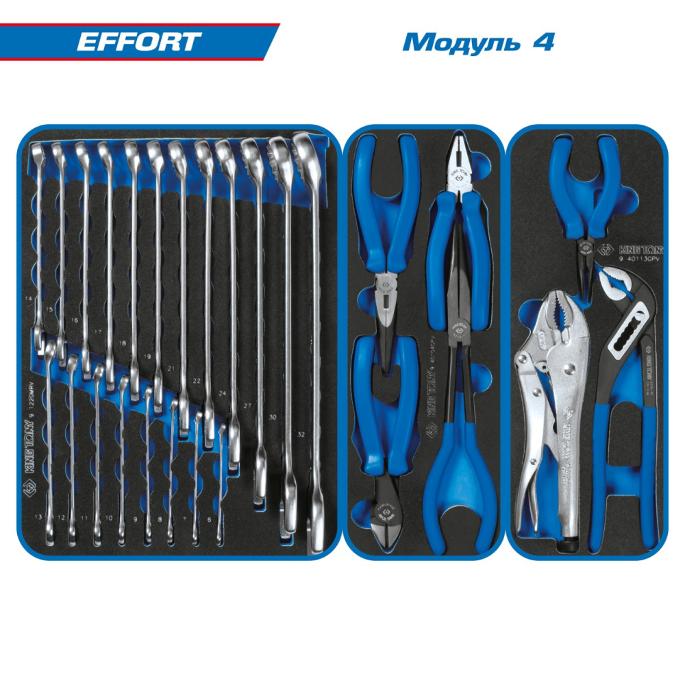 Набор инструментов "EFFORT" для тележки, 12 ложементов, 235 предметов KING TONY 934-235MRVD