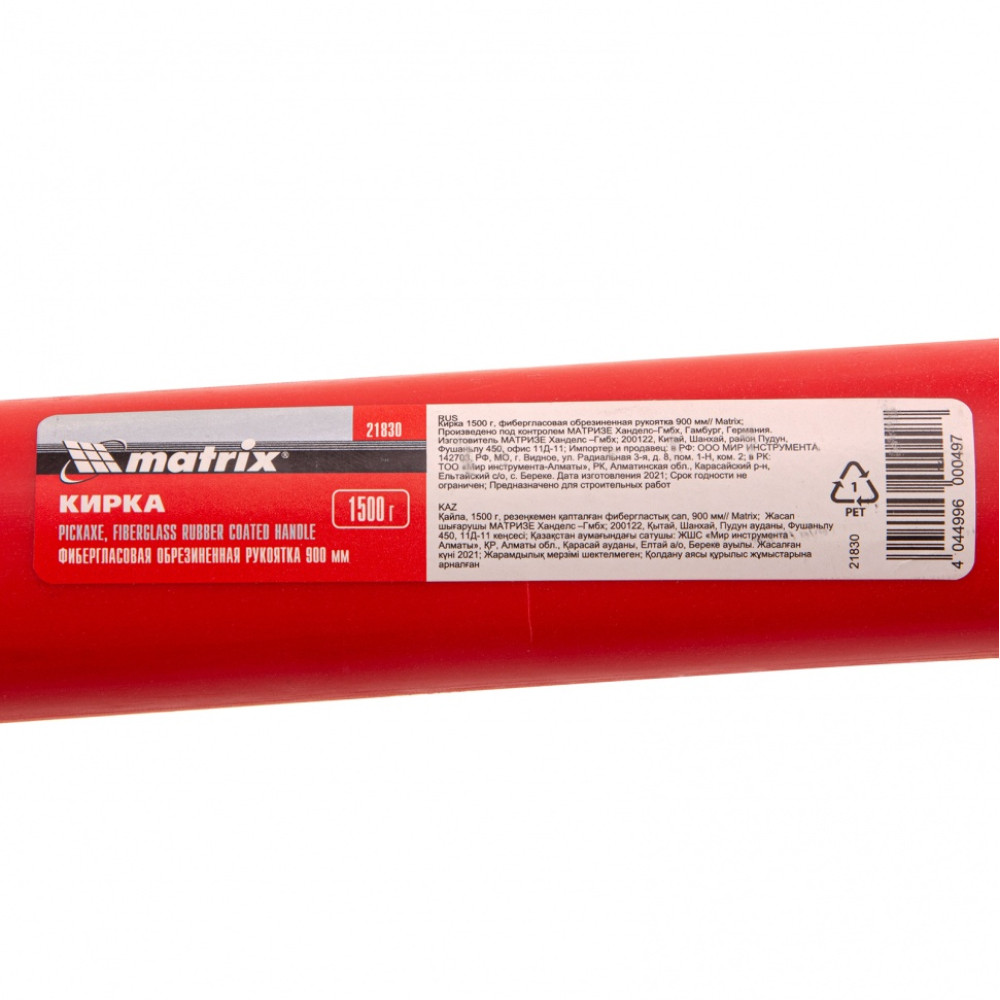Кирка Matrix 21830 с головой весом 1500 г и фибергласовой обрезиненной рукояткой длиной 900 мм применяется для садовых, строительных и демонтажных работ. Длинная рукоятка эргономичной формы позволяет работать двумя руками, не выскальзывает и хорошо амортизирует удар, поэтому инструмент удобен в эксплуатации.