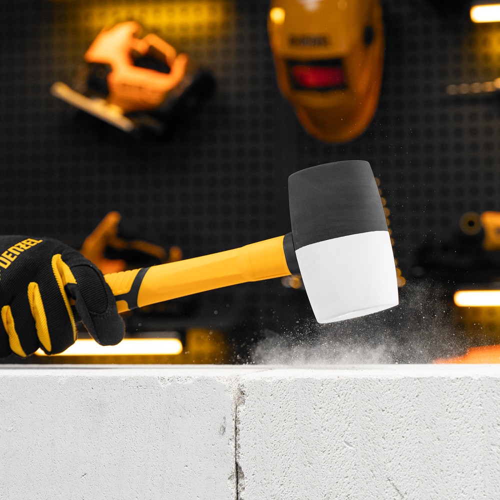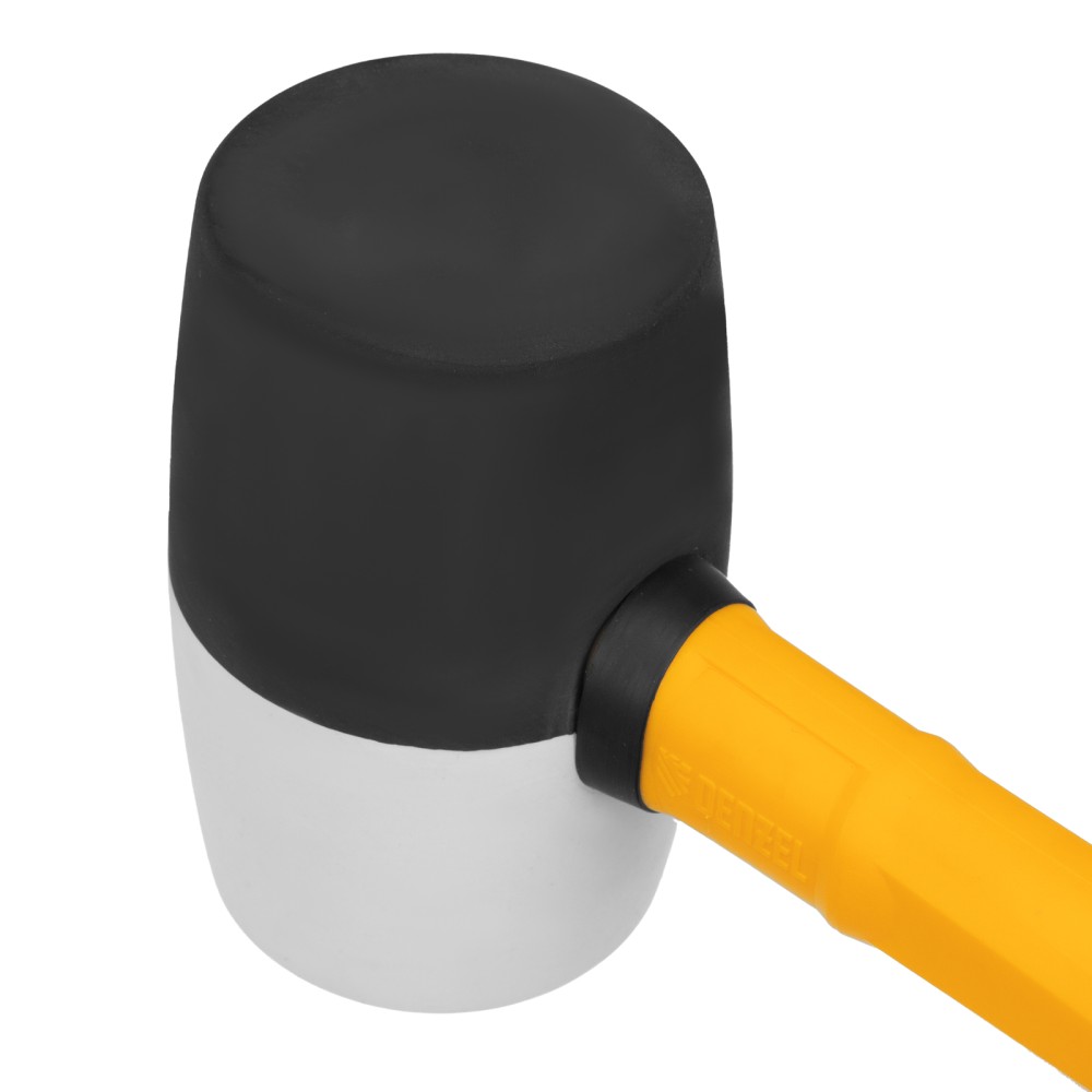 Резиновая киянка Denzel 11103 с бойком из черно-белой резины весом 680 г и фибергласовой рукояткой с TPR-покрытием, применяется во время монтажных, сборочных и кузовных работ, укладки плитки. Резиновый боек с высокими амортизирующими свойствами оптимален для работы с чувствительными к давлению материалами. Инструмент характеризуется высокой прочностью и стойкостью к агрессивному воздействию, подходит для профессионального использования.ПреимуществаБезопасная работа со светлыми материалами — часть бойка из белой резины не оставляет следов.Надежность — фибергласовая рукоятка не деформируется даже при интенсивной эксплуатации.Комфортная эксплуатация — фибергласовая обрезиненная рукоятка гасит вибрации от удара и не выскальзывает из ладони.