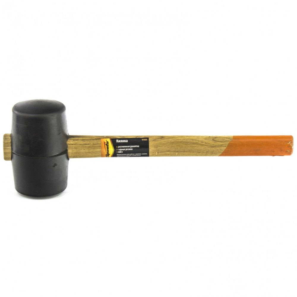 Резиновая киянка Sparta 111555 из черной резины с деревянной рукояткой, 680 г, используется при укладке плитки и ламината, рихтовке металла, сборке мебели и т.д. Инструмент хорошо амортизирует удар и относится к профессиональному типу.