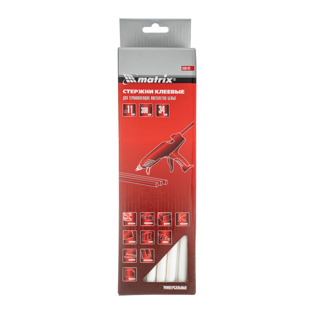 Белые клеевые стержни Matrix 930742 длиной 300 мм, общим весом 1 кг, — расходные материалы для клеевых пистолетов калибра 11 мм. Обеспечивают надежное сцепление различных материалов: бумаги, пластика, древесины, керамики, электрических плат и т.д. Подходят также для герметизации швов и трещин.ПреимуществаТемпература плавления 90 градусов — стержни оптимально подходят для маломощных клеевых пистолетов.Экологичность и долговечность — стержни из безопасного полимера EVA с содержанием воска и смолы не токсичны, устойчивы к воздействию воды и химических веществ.Удобная комплектация — 1 кг термоклея хватит для выполнения большого объема работ.