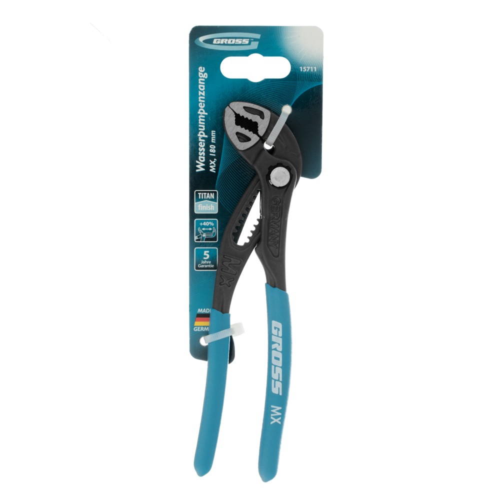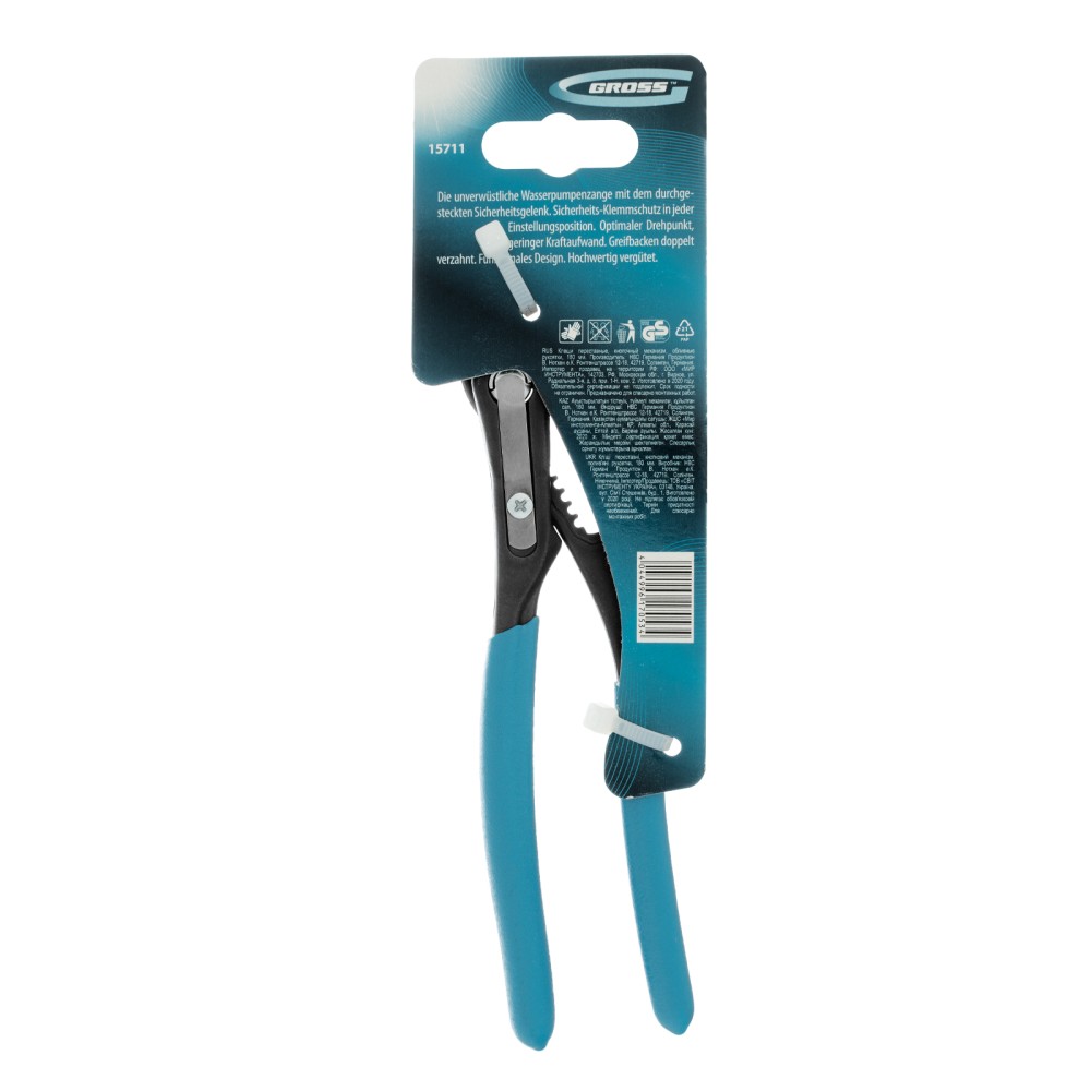 Переставные клещи Gross 15711 длиной 180 мм, с кнопочным механизмом и обливными рукоятками, — профессиональный инструмент для работ с сантехникой, фитингами, трубами и т.д. Рабочие губки с насечками обеспечивают надежный захват изделий диаметром до 35 мм. Клещи удобны для работы в труднодоступных местах.ПреимуществаНадежность и долговечность — клещи выполнены из износостойкой и прочной стали С45.Легкое переключение между задачами — кнопочный механизм позволяет быстро менять положение губок для работы с деталями разного размера.Устойчивость к воздействию влаги — покрытие Titan Finish надежно защищает металлические части от коррозии.Эффективная работа с мелкими деталями — в конструкции предусмотрен паз для захвата проволоки и гвоздей.Удобство работы — обливные рукоятки не выскальзывают из руки.Гарантия на заводской брак 5 лет — высокое качество клещей подтверждено производителем.