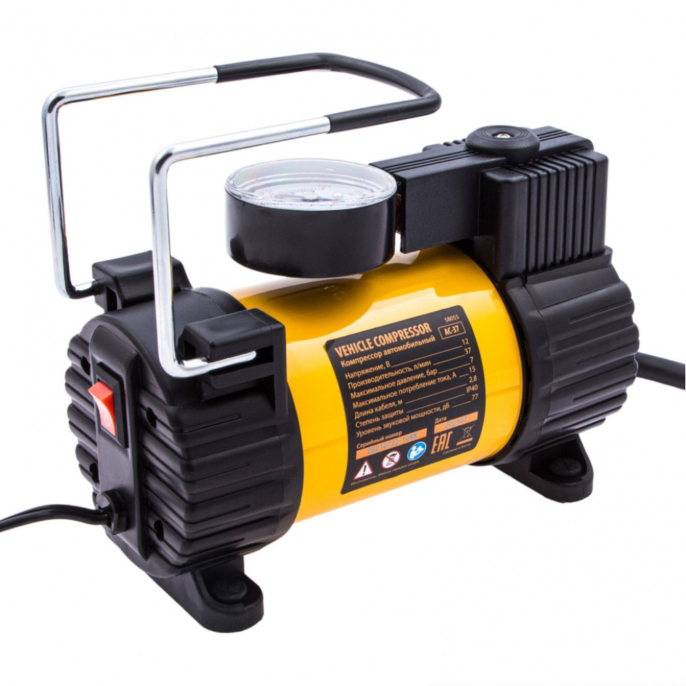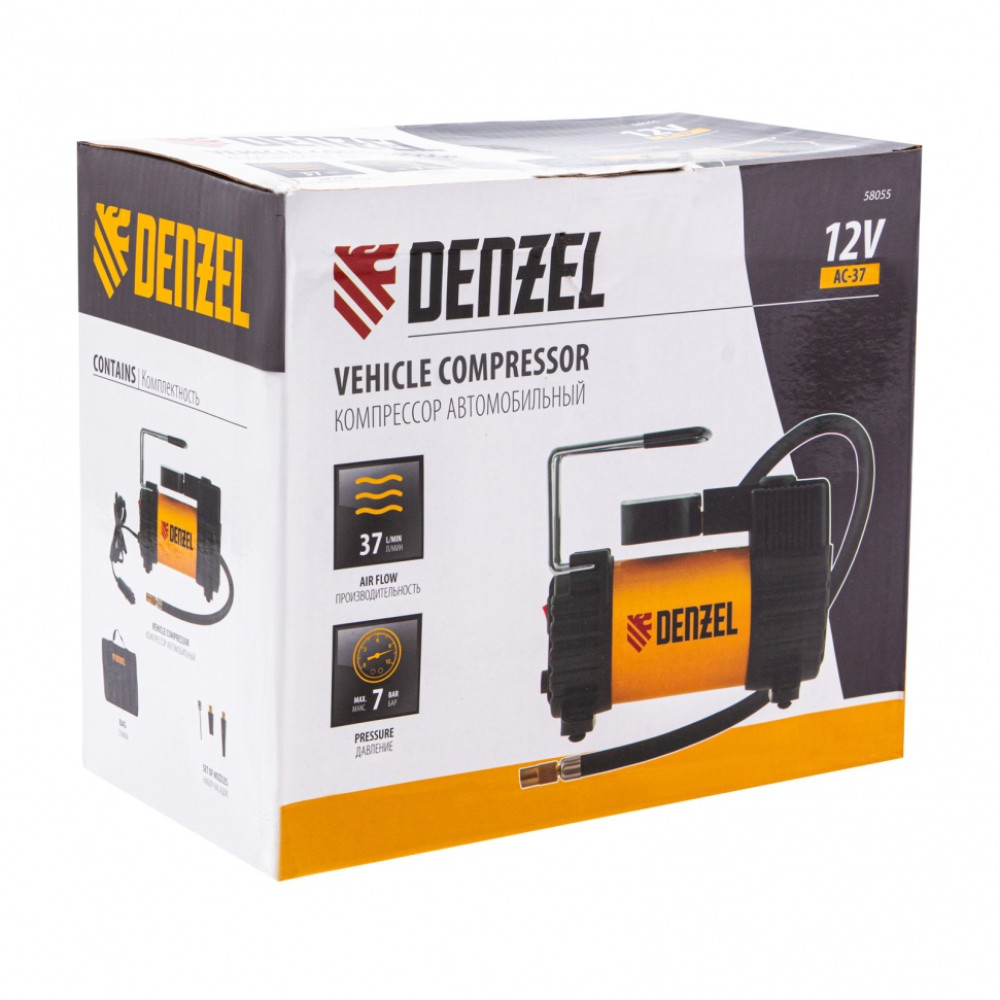 Автомобильный компрессор Denzel AC-37 58055 с автомобильным предохранителем работает от бортовой сети 12 В, обеспечивает давление 7 атмосфер и производительность 37 л/мин. Служит для накачивания шин, резиновых матрацев, надувных лодок и других изделий — для этого предусмотрены различные насадки. Компрессор пригодится в гараже, будет полезен в дальней поездке, а также во время отдыха на природе.