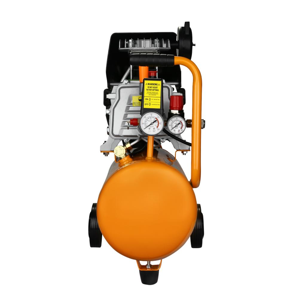 - Ресивер объемом 24 литра позволяет накапливать сжатый воздух, что ведет к сокращению рабочих циклов и замедляет изнашивание. Колеса облегчают перемещение компрессора.