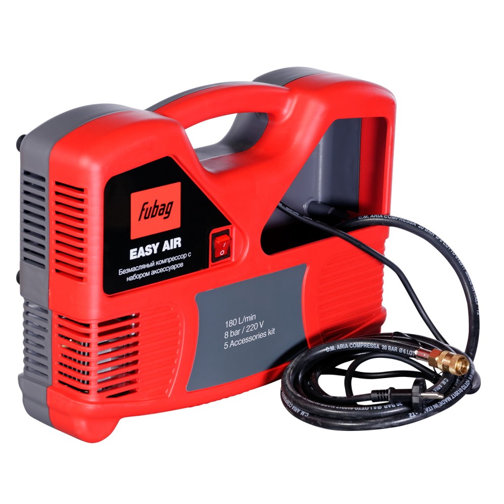 - Fubag Easy Air - переносной безмасляный компрессор, предназначенный для обеспечения пневмоинструмента чистым сжатым воздухом. Широко применяется в ремонте и домашнем применении.