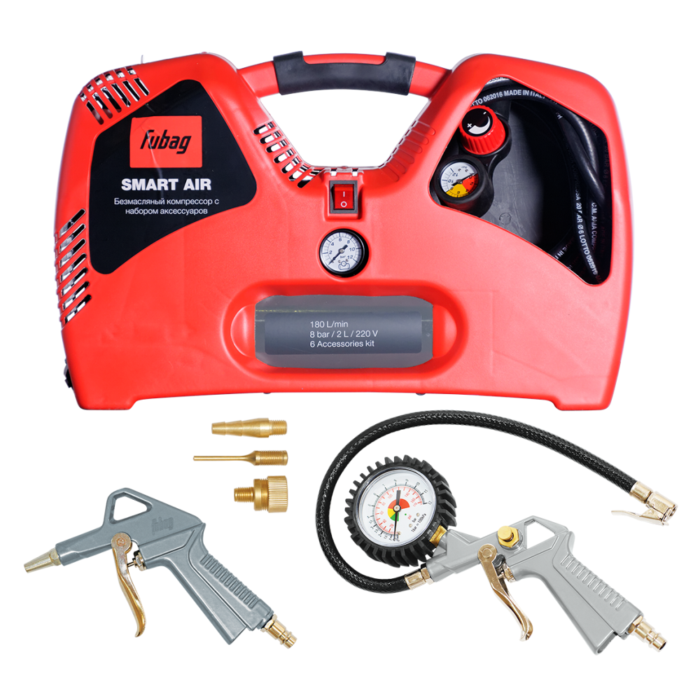 Универсальный многофункциональный набор для снабжения чистый сжатым воздухом для накачки небольших изделий, продувки узких водопроводных труб, для чистки поверхности и т.д. Благодаря констуруктиву занимает минимум места при хранении. Удобен в переноске. Весь пневмоинструмент, находящийся в наборе, компактно и удобно размещен непосредственно в корпусе компрессора.