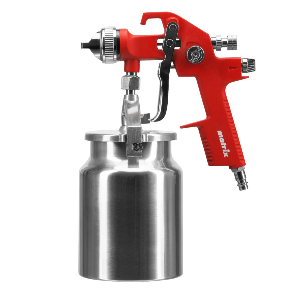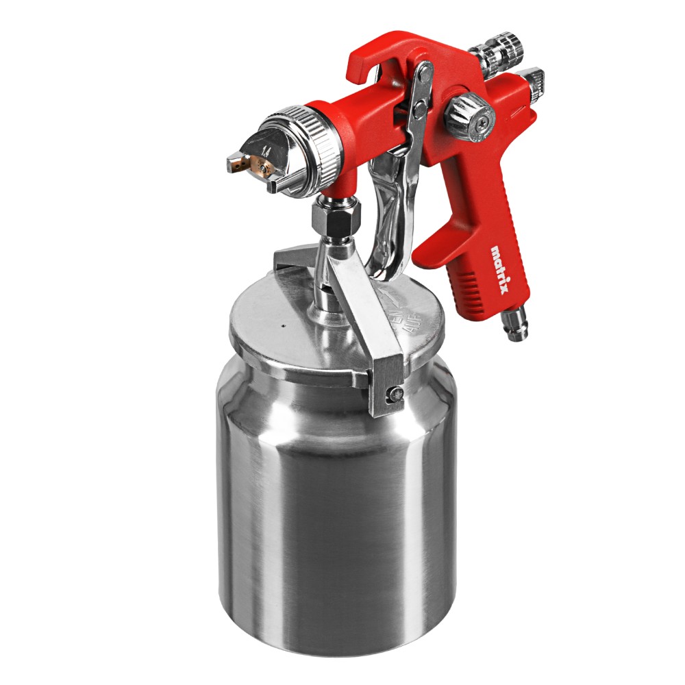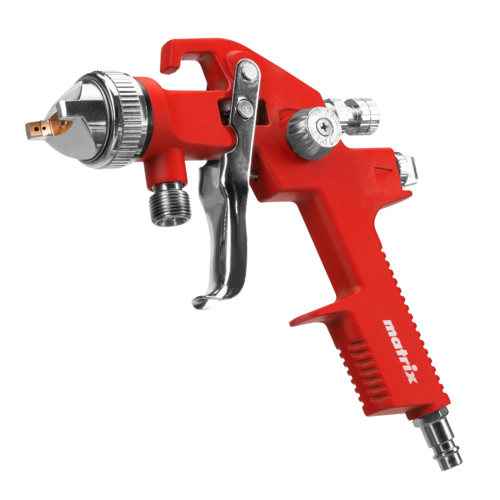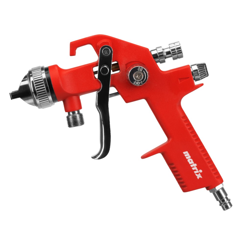 Пневматический краскораспылитель с нижним бачком Matrix 57319 объемом 1 л, с соплом диаметром 1,4 мм, расходует 170-280 л воздуха в минуту и предназначен для выполнения окрасочных работ. Позволяет работать с лакокрасочными материалами разных типов и консистенции. Благодаря технологии HVLP (High Volume Low Pressure, высокий объем, низкое давление) на поверхность переносится до 65% ЛКМ, что обеспечивает высокую производительность и сокращает потери краски. Краскораспылитель пригодится в мастерской, в гараже и в автосервисе.ПреимуществаРешение широкого спектра задач — предусмотрена возможность регулировки давления воздуха, подачи краски, направления и формы факела в зависимости от потребностей пользователя.Прочность и долговечность — корпус пистолета и бачок из алюминиевого сплава устойчивы к механическим повреждениям и коррозии.Обработка участков большой площади — вместительный бачок обеспечивает длительную работу без дозаправки.Комфортное использование — нижнее расположение бачка и небольшой вес пистолета позволяют уменьшить нагрузку на руки.