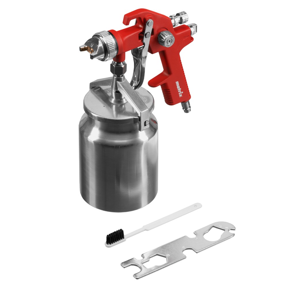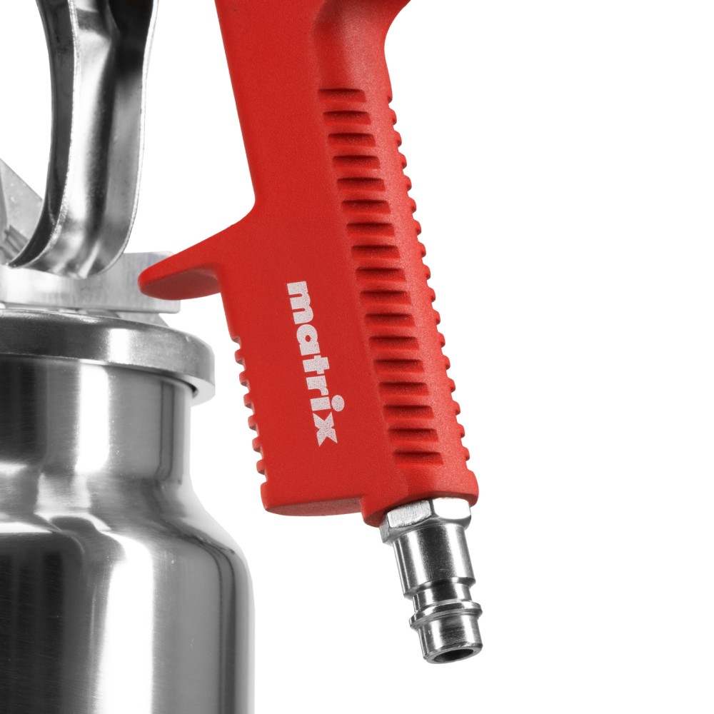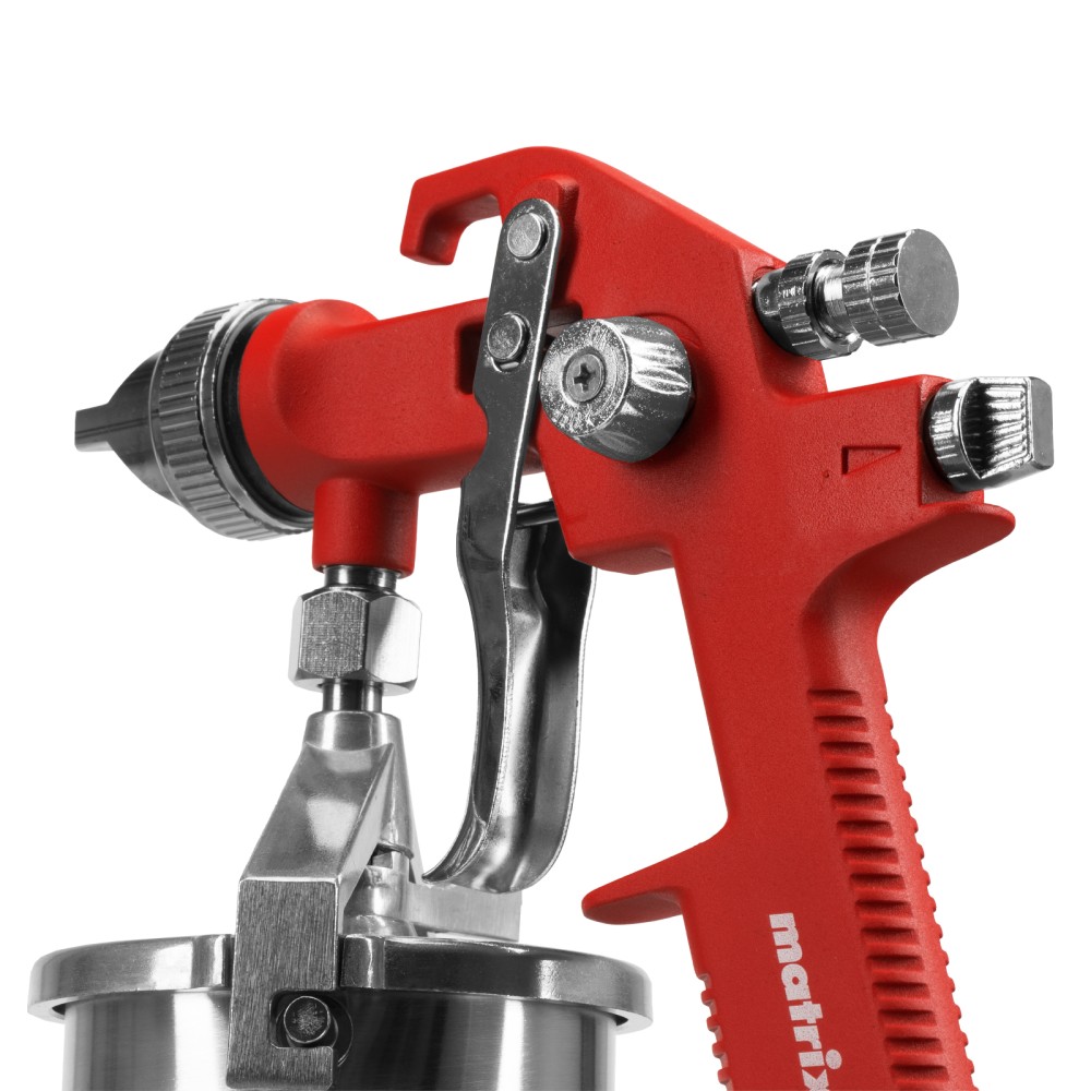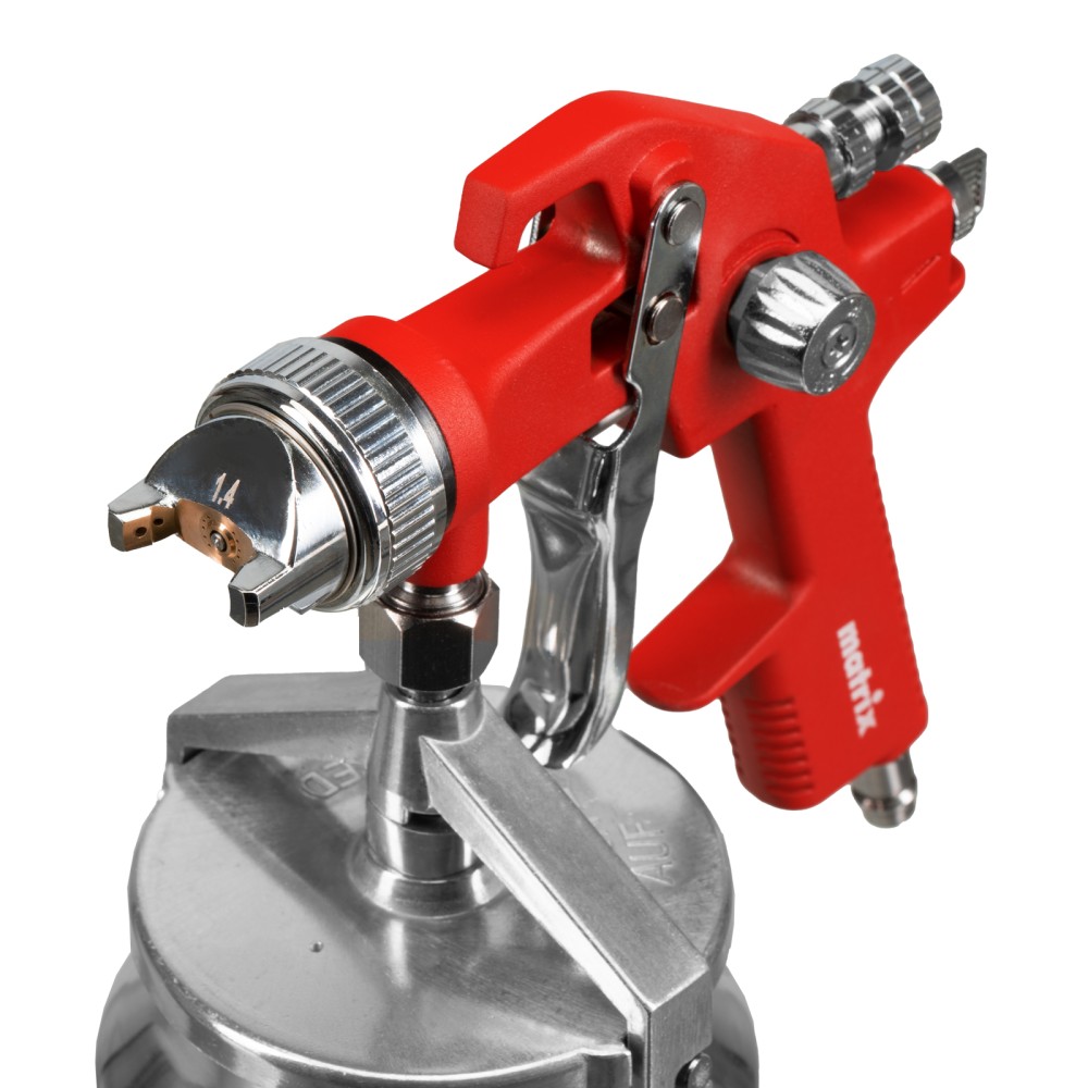 Пневматический краскораспылитель с нижним бачком Matrix 57319 объемом 1 л, с соплом диаметром 1,4 мм, расходует 170-280 л воздуха в минуту и предназначен для выполнения окрасочных работ. Позволяет работать с лакокрасочными материалами разных типов и консистенции. Благодаря технологии HVLP (High Volume Low Pressure, высокий объем, низкое давление) на поверхность переносится до 65% ЛКМ, что обеспечивает высокую производительность и сокращает потери краски. Краскораспылитель пригодится в мастерской, в гараже и в автосервисе.ПреимуществаРешение широкого спектра задач — предусмотрена возможность регулировки давления воздуха, подачи краски, направления и формы факела в зависимости от потребностей пользователя.Прочность и долговечность — корпус пистолета и бачок из алюминиевого сплава устойчивы к механическим повреждениям и коррозии.Обработка участков большой площади — вместительный бачок обеспечивает длительную работу без дозаправки.Комфортное использование — нижнее расположение бачка и небольшой вес пистолета позволяют уменьшить нагрузку на руки.