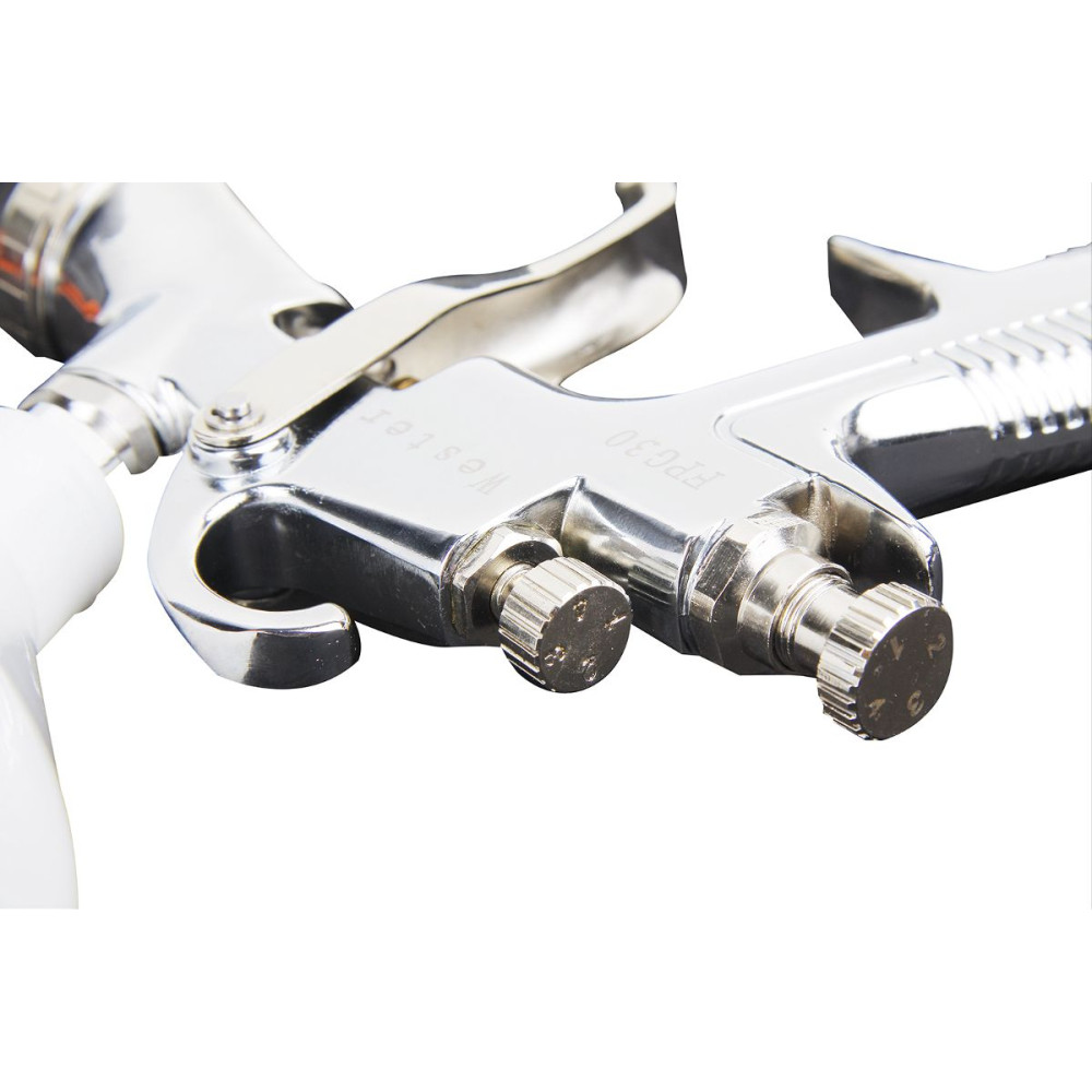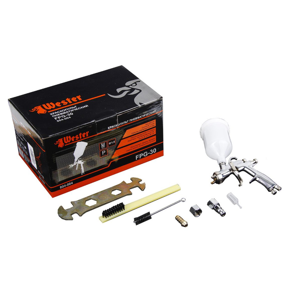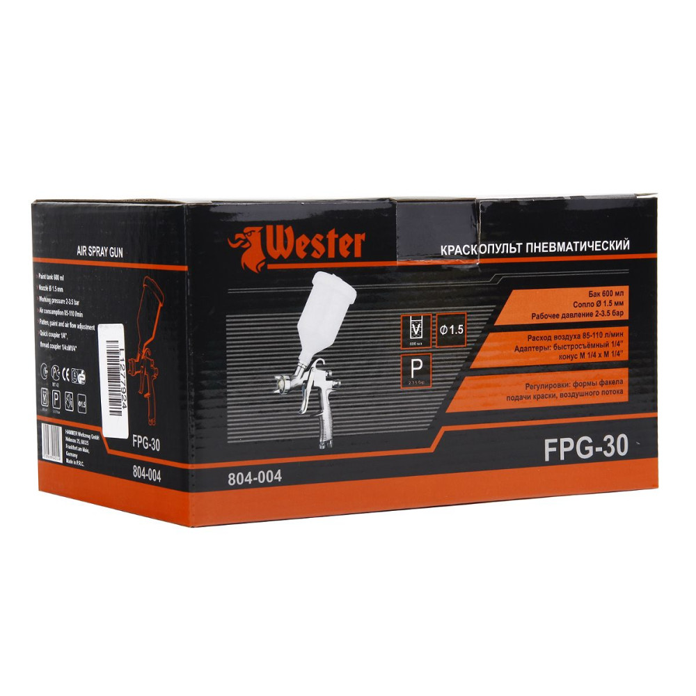 WESTER FPG-30 - профессиональный LVLP-краскопульт для покрытия поверхностей красками, лаками, грунтовкой и т.д. Отличается высоким процентом переносом материала на поверхность, с малой растратой на туманообразование.