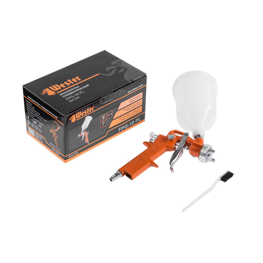 - WESTER FPG10-PL - компактный пневматический краскопульт. Лучше всего подойдет для покраски небольших конструкций сложной формы.