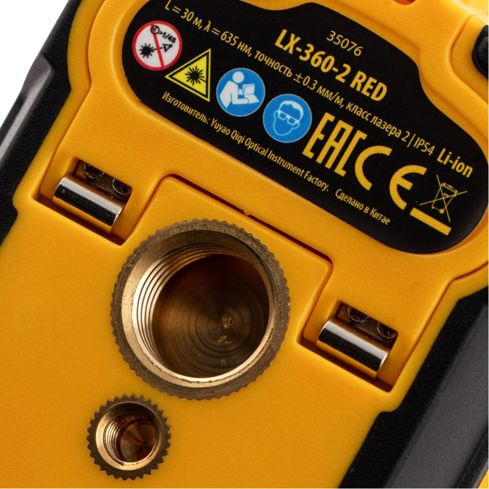 Лазерный уровень мультипризменный LX 360-2 Red, 30 м, 635 нм, аккумулятор Li 2800 мАч, резьба 5/8" Denzel