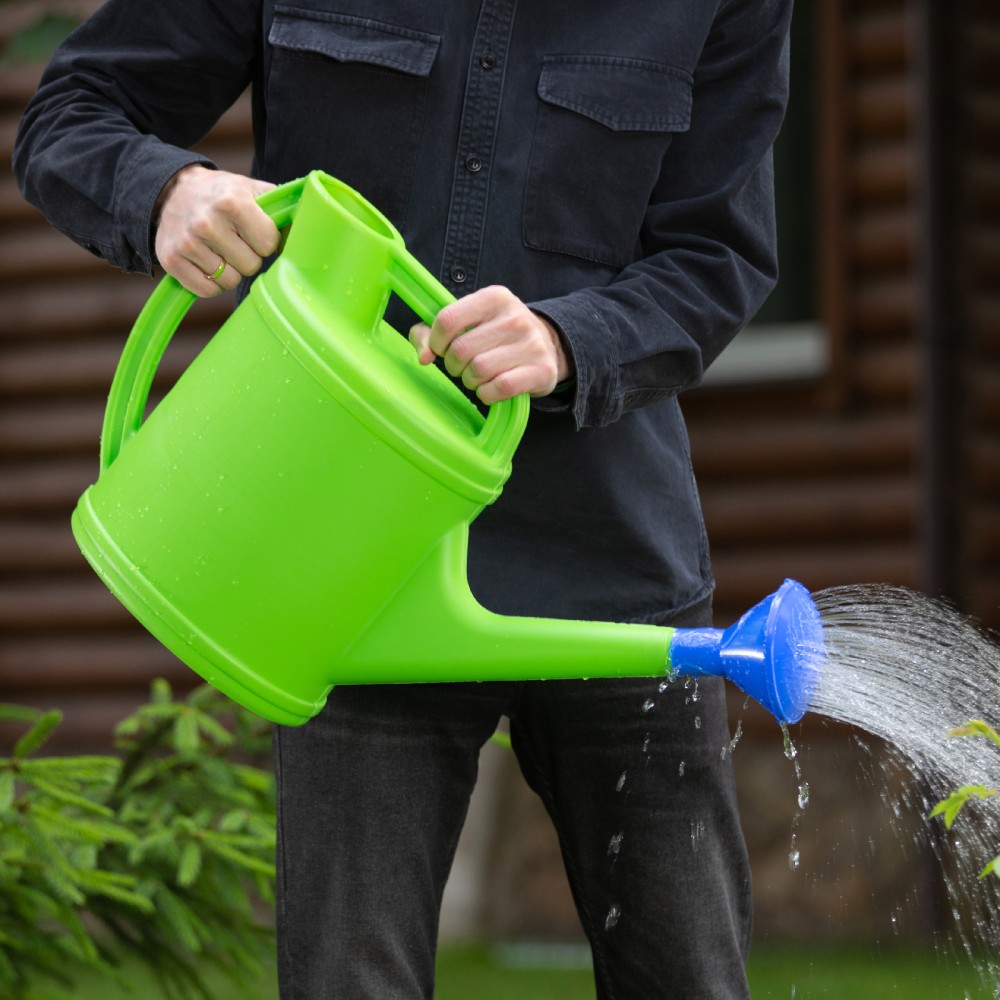 Пластмассовая садовая лейка Сибртех 67521 объемом 10 л, с горловиной, предназначена для полива растений в саду и на огороде, а также для увлажнения приствольных кругов деревьев и кустарников. Вместительную емкость не требуется часто наполнять. Две ручки облегчают подъем и перемещение лейки с водой.ПреимуществаДолговечность — лейка изготовлена из прочного полиэтилена, не подверженного коррозии и разрушительному действию ультрафиолета.Равномерный полив — съемная выпуклая насадка-рассеиватель позволяет орошать посадки без риска размыть землю и оголить корни.Высокая горловина — вода не расплескивается при перемещении наполненной лейки.