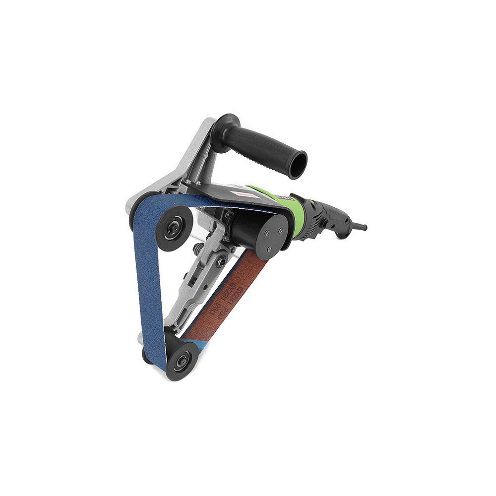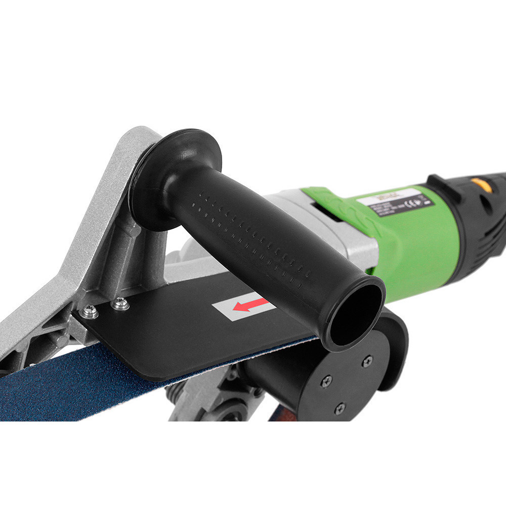 Система трехроликового подпружиненного лентопротяжного механизма увеличивает площадь соприкосновения шлифовальной ленты с обрабатываемой поверхностью, что гарантирует быстрое и качественное выполнение работ, а приводные ролики предотвращают соскальзывание шлифленты при работе.