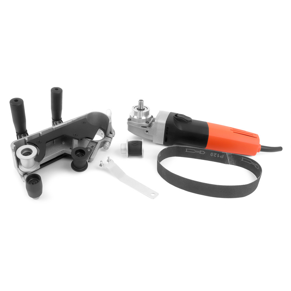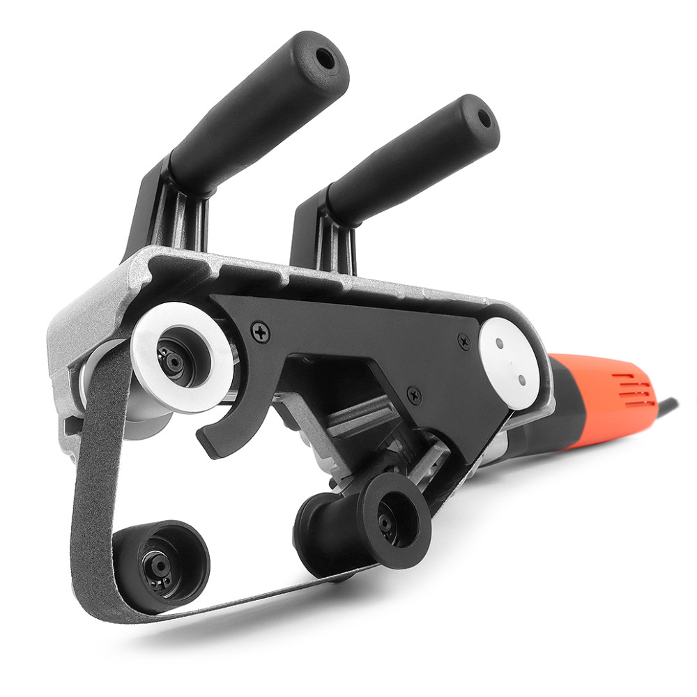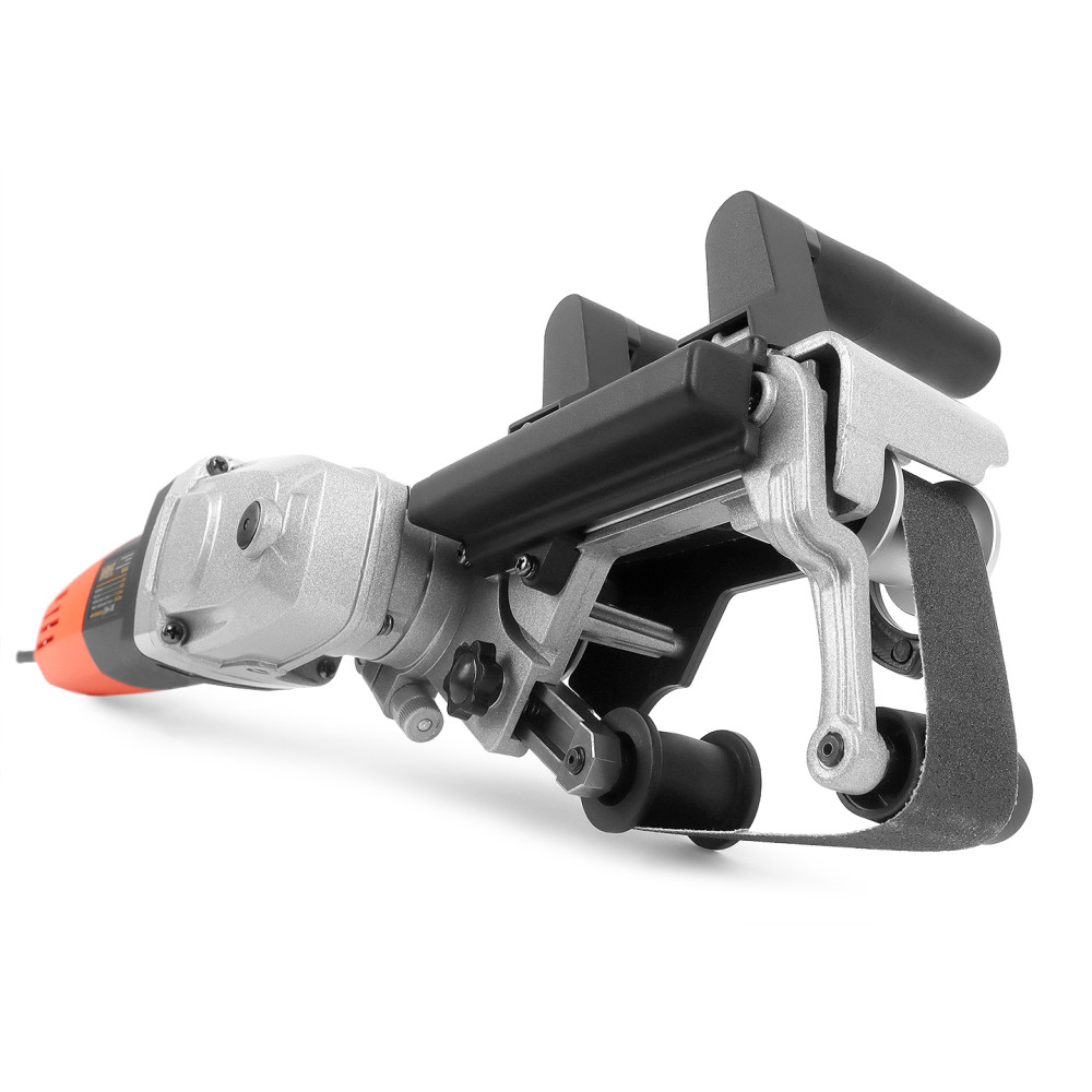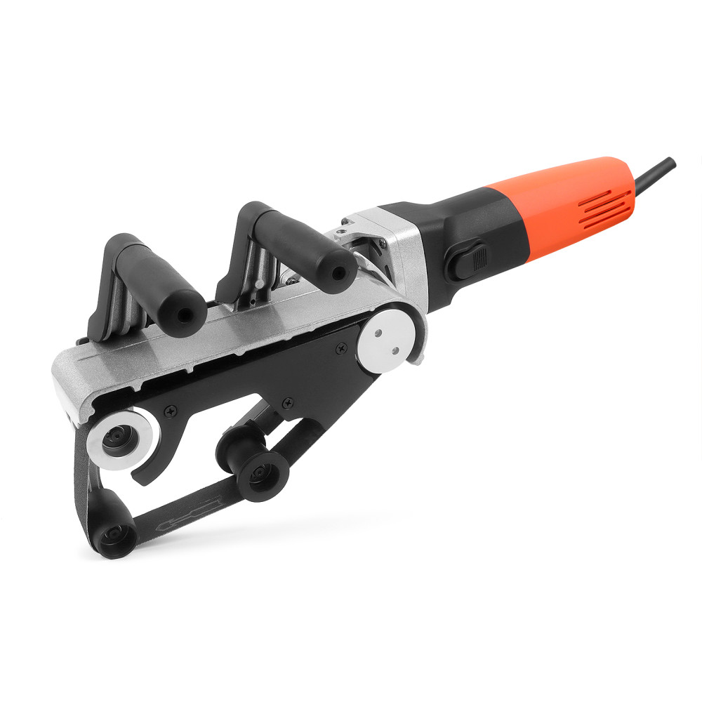 Дополнительная рукоятка, сопряженная с натяжным роликом, позволяет оператору контролировать провис ленты и её прилегание к обрабатываемому материалу. При правильной регулировке машина позволяет обрабатывать поверхность трубы в максимальном диапазоне 162,5 градусов.