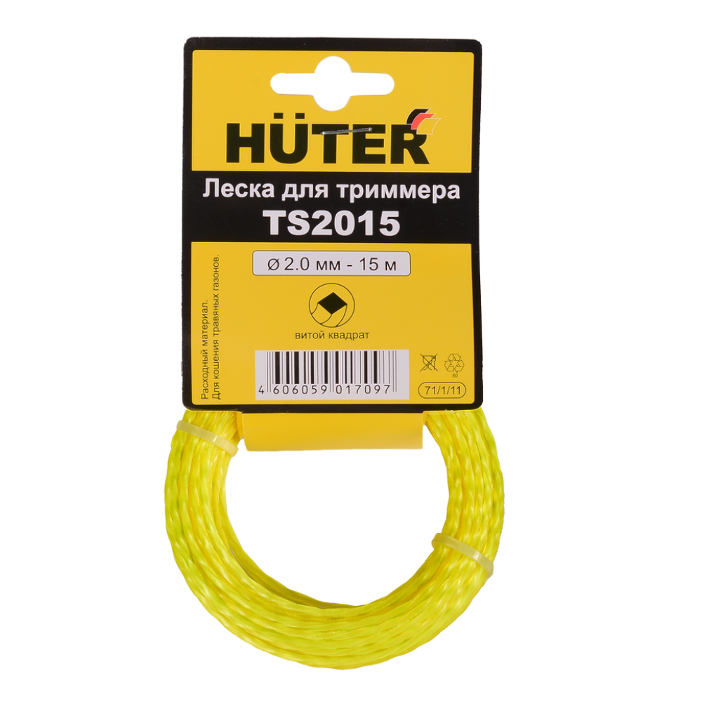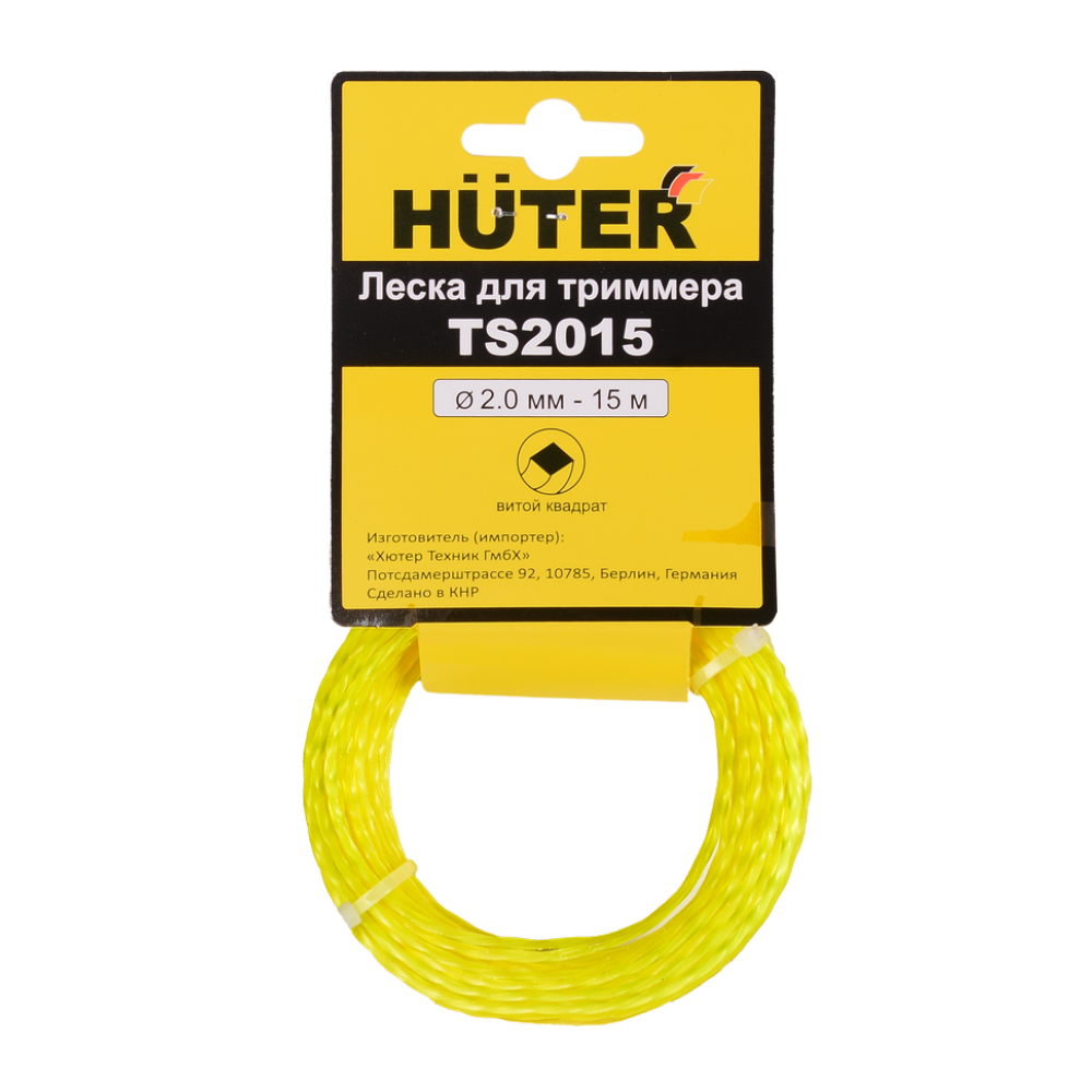 - Леска Huter TS2015 с сечением в форме витого квадрата, диаметр 2 мм, длина 15 м.