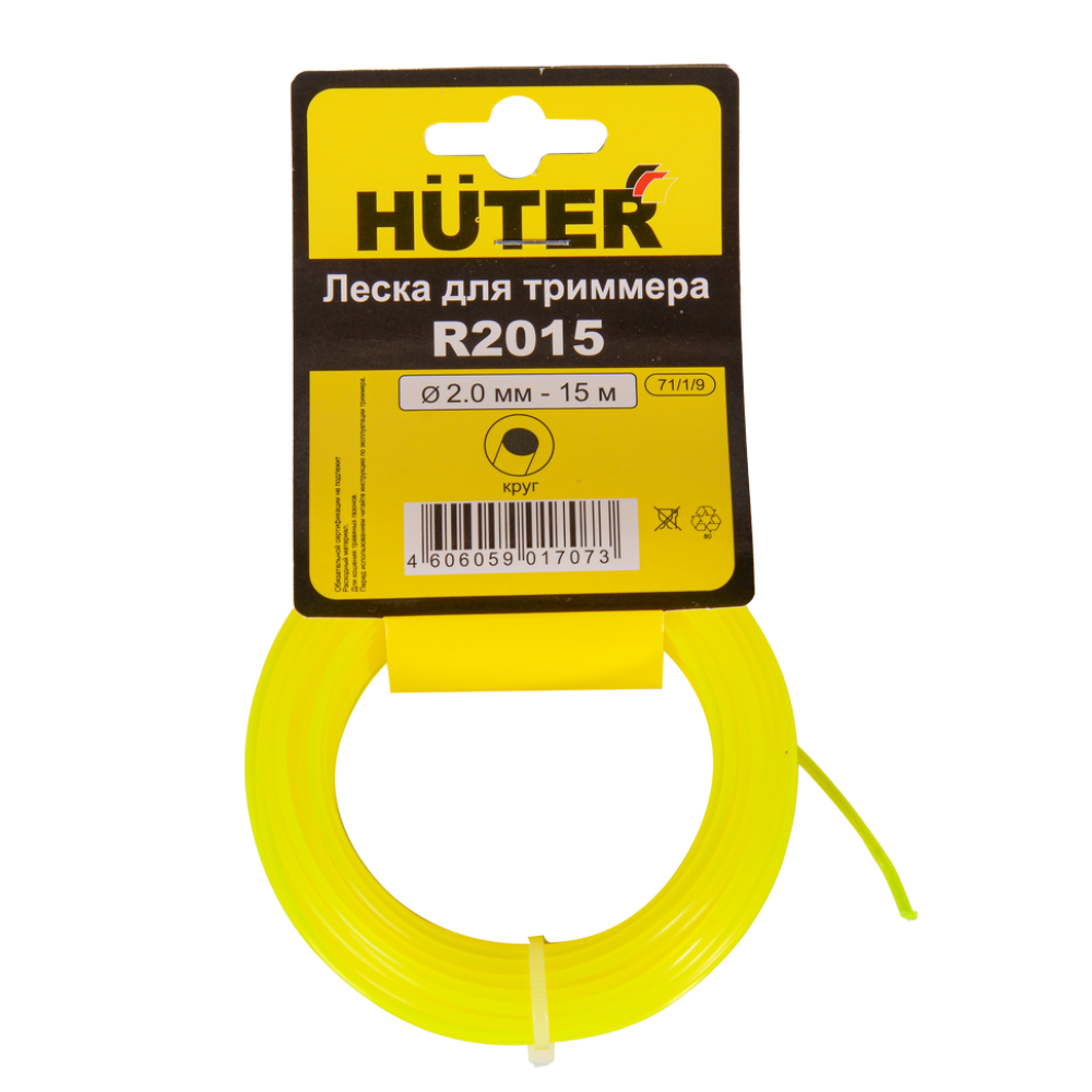 - Леска Huter R2015 с круглым сечением, диаметр 2 мм, длина 15 м.
