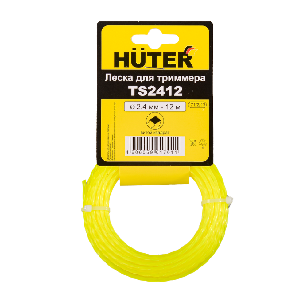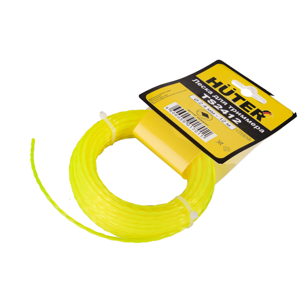- Леска Huter TS2412 с сечение в форме витого квадрата, диаметр 2,4 мм, длина 12 м.