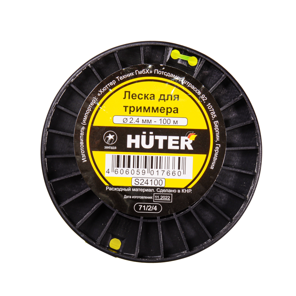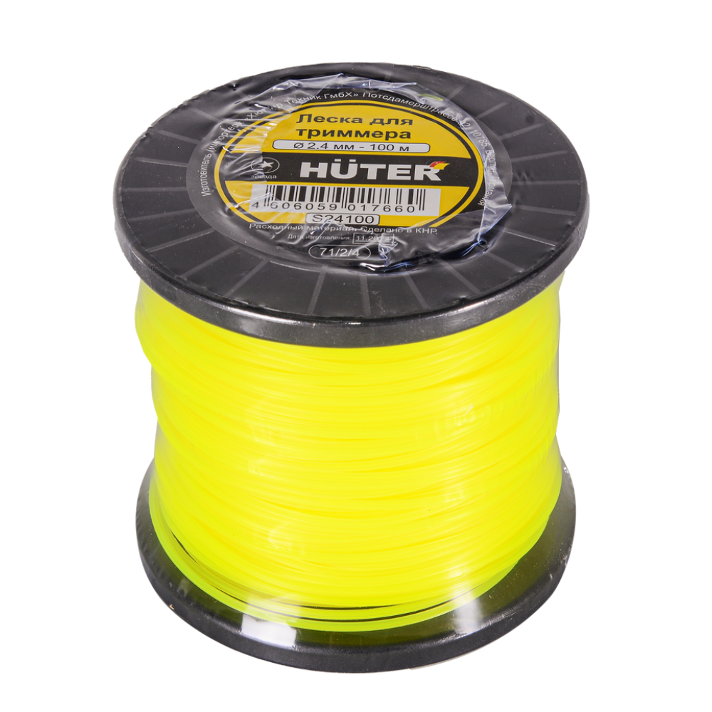 - Леска Huter S24100 с сечением в форме звезды, диаметр 2,4 мм, длина 100 м.