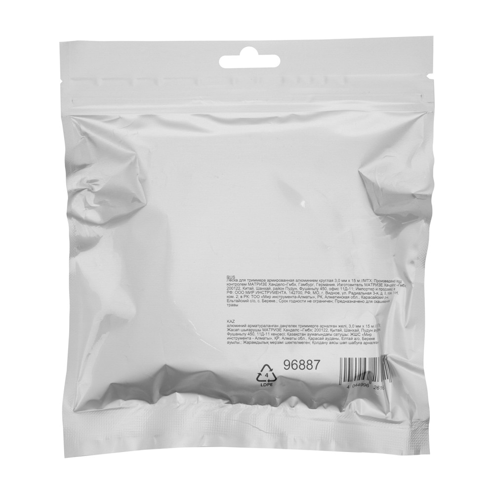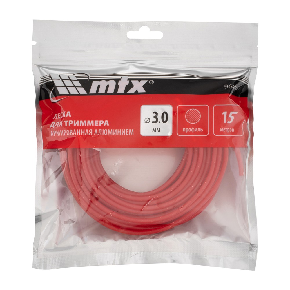 Леска для триммера MTX 96887 круглого сечения, диаметром 3,0 мм и длиной 15 м, армированная алюминием, эффективно срезает как газонную, так и высокую, жесткую или сухую траву. Справляется даже с молодыми побегами кустарников. Совместно с бензиновым триммером позволяет привести в порядок загородный участок, придомовую территорию и т.д.ПреимуществаПовышенная износостойкость — леска изготовлена из полиамида, содержащего микрочастицы алюминия, что значительно увеличивает ее прочность и устойчивость к нагрузкам.Эффективная работа — корд с универсальным сечением «круг» аккуратно срезает газонную траву, имеет наиболее экономичный расход и практически не изнашивается.Длина 15 м — одной намотки хватит надолго.