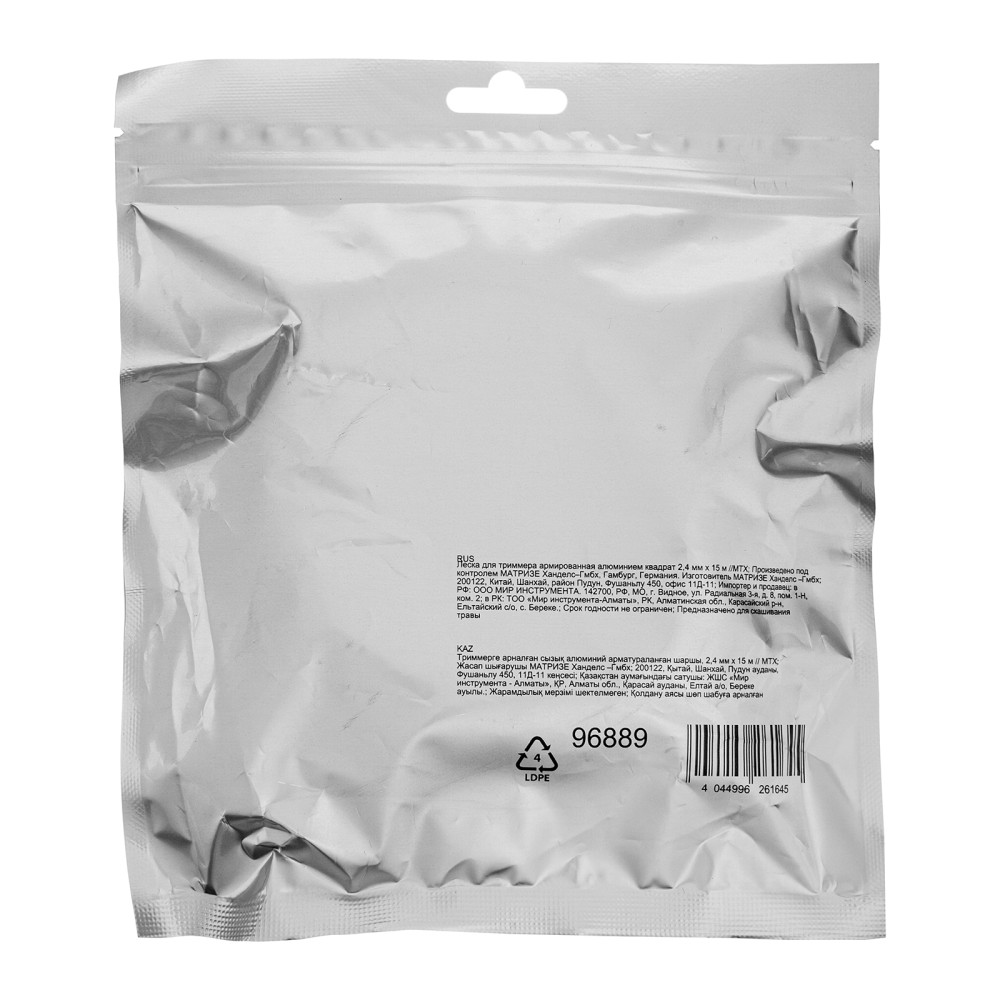 Леска для триммера MTX 96889 с сечением «квадрат», толщиной 2,4 мм и длиной 15 м, армированная алюминием, эффективно срезает как молодую, газонную, так и высокую, жесткую траву. Совместно с бензиновым триммером позволяет привести в порядок территорию загородного участка, придомовую территорию и т.д.ПреимуществаПовышенная износостойкость — леска изготовлена из полиамида, содержащего микрочастицы алюминия, что значительно увеличивает ее прочность и устойчивость к нагрузкам.Высокая производительность — благодаря острым граням корд обеспечивает быстрый и ровный рез, трава не желтеет после скашивания.Длина 15 м — одной намотки хватит надолго.