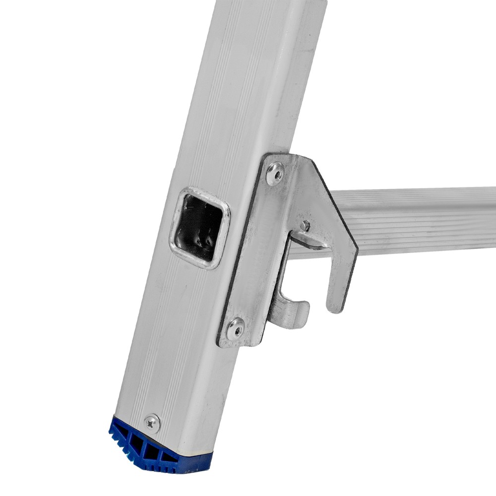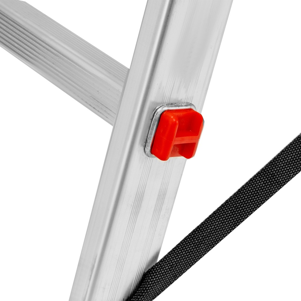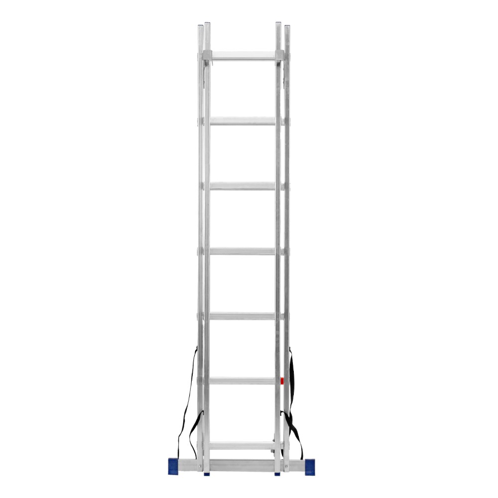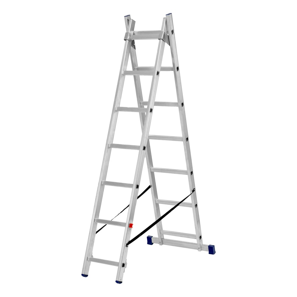 Алюминиевая двухсекционная лестница Сибртех 97907 состоит из 2 секций по 7 ступеней каждая. Легкая и прочная, она используется в качестве двухсторонней стремянки, предназначена для бытового и полупрофессионального применения.Преимущества3 рабочих положения — стремянка, двухсторонняя стремянка, приставная лестница с одной или двумя секциями.Надежность — рама, изготовленная из алюминиевого профиля прямоугольного сечения методом прессования, выдерживает нагрузку до 150 кг, страховочные стяжки увеличивают прочность конструкции.Устойчивость — благодаря съемному стабилизатору лестница ровно стоит на горизонтальной поверхности.Защита напольного покрытия — пластиковые заглушки на ножках предотвращают появление царапин.Безопасность пользователя — на профилированных ступенях имеется противоскользящее рифление, также предусмотрены ограничители безопасности по максимальной высоте.Простая и компактная конструкция — лестница быстро собирается и разбирается, не занимает много места при хранении и транспортировке.Внешний вид товара может незначительно отличаться от указанного на изображении, что не влечет изменения его качества.