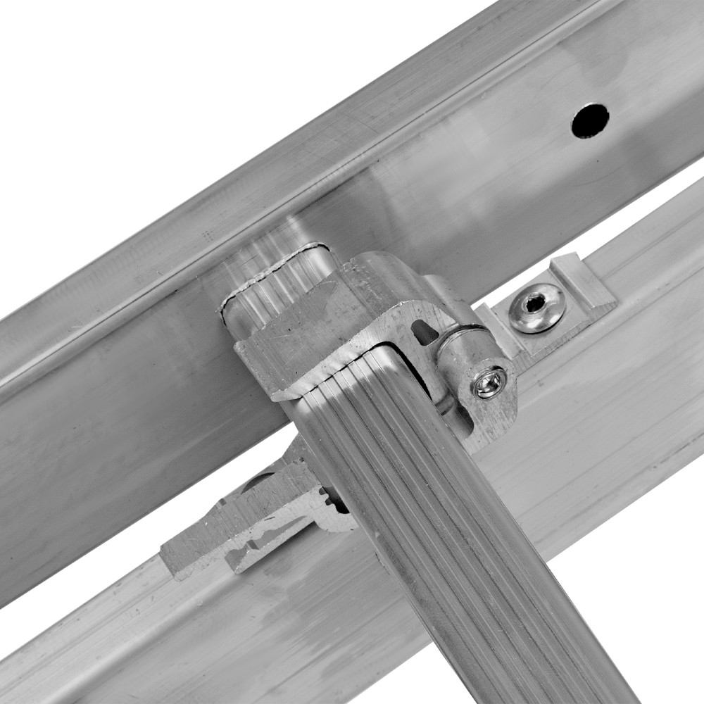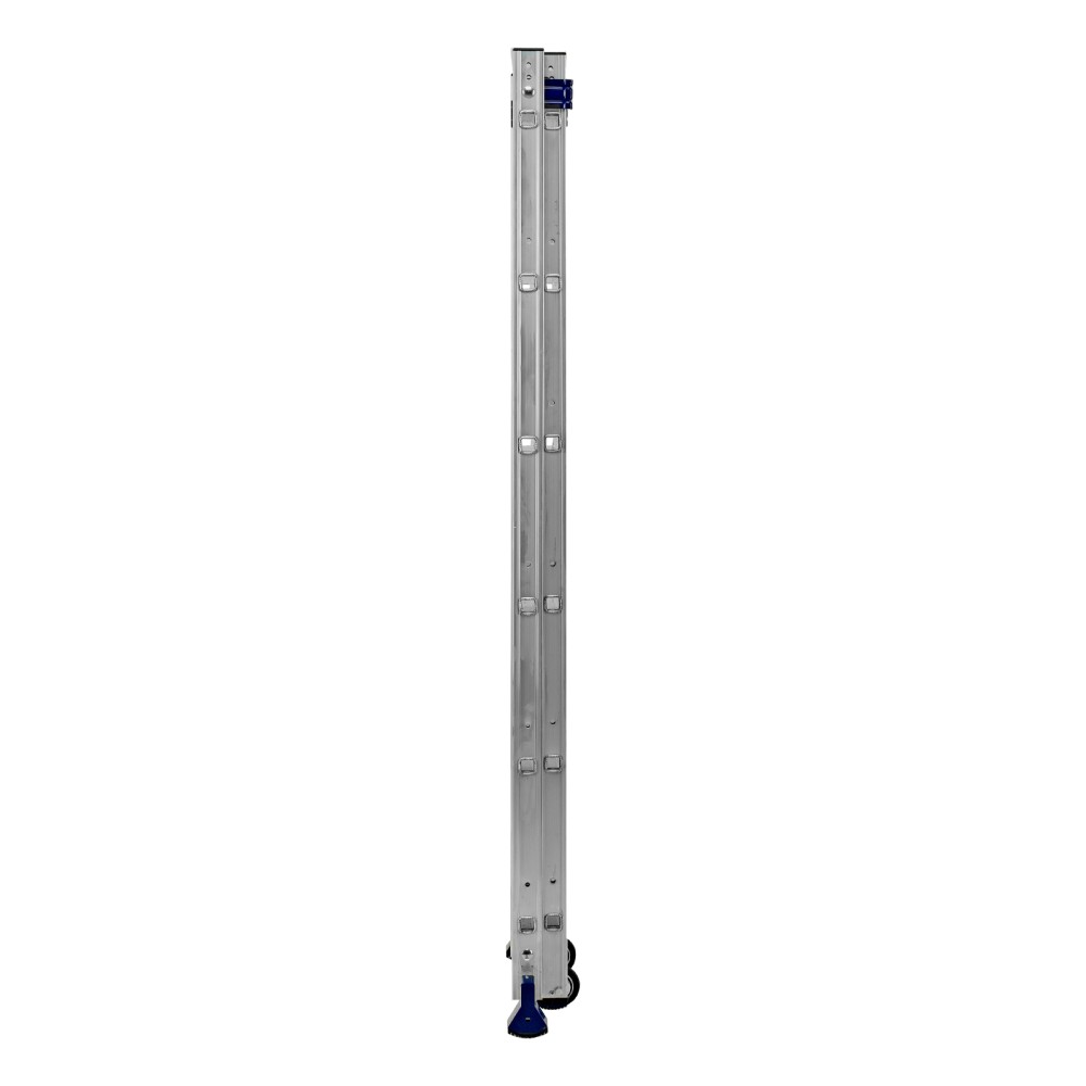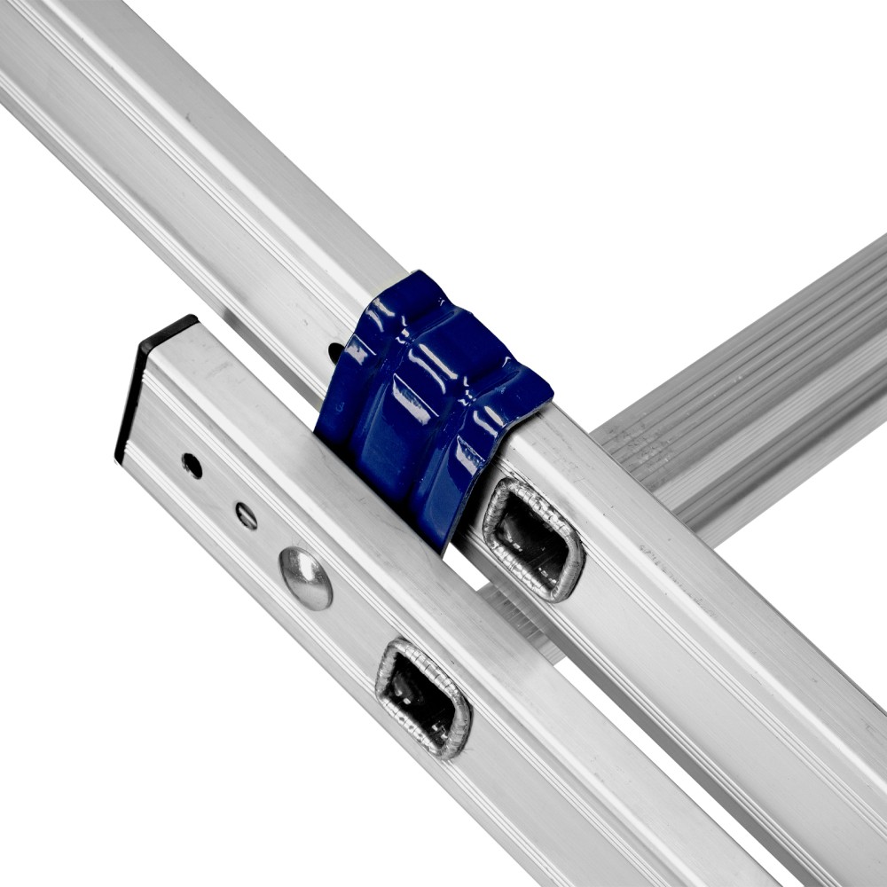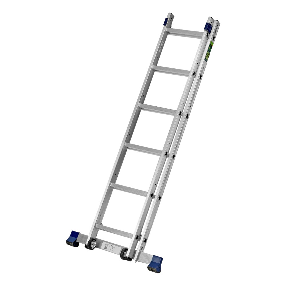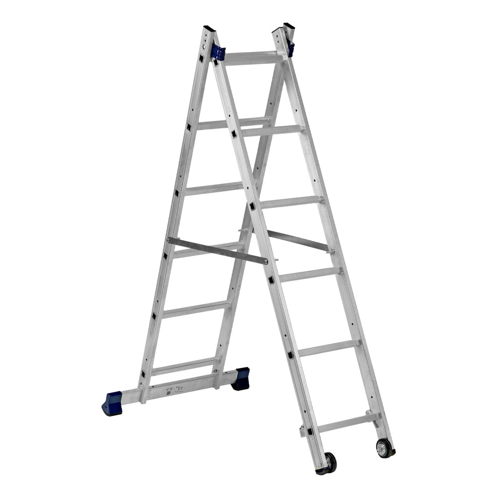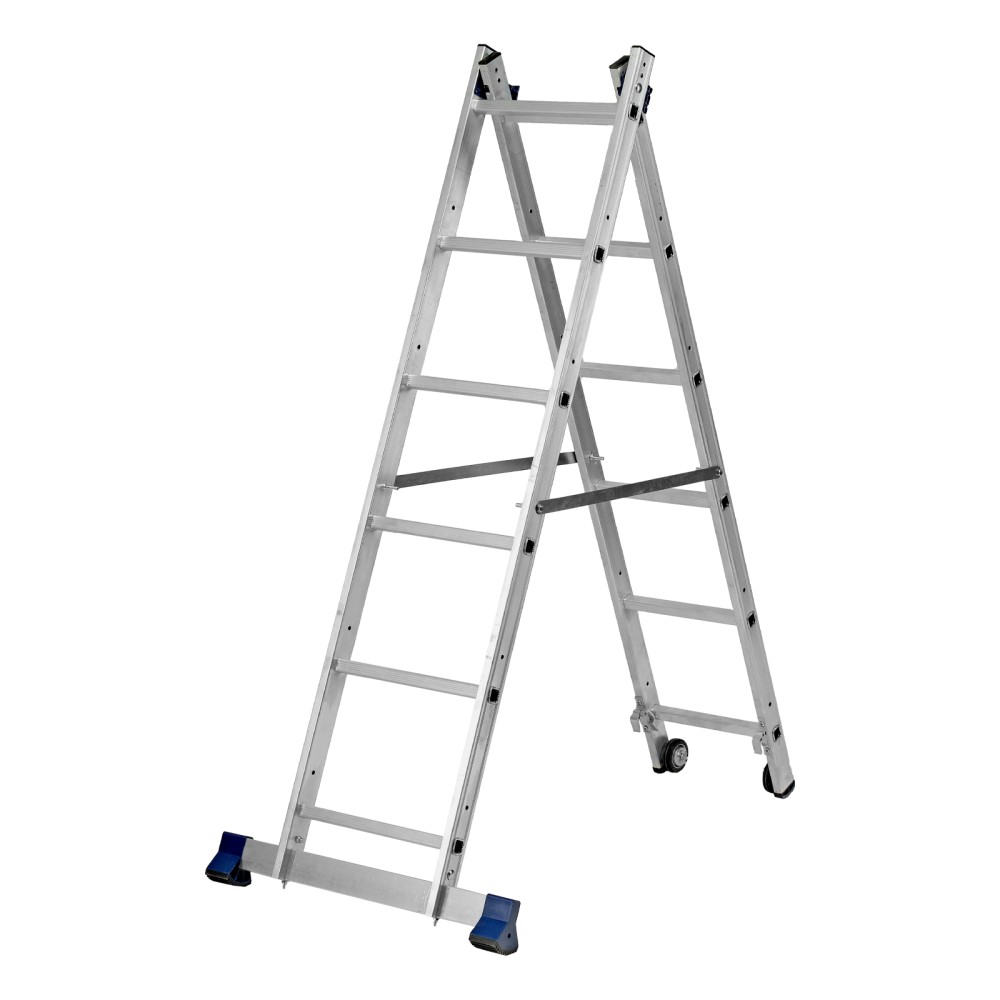 Лестница-помост 3 в 1 97970 необходима для проведения малярных и штукатурных работ на высоте нескольких метров. Площадка выдерживает нагрузку 150 кг, поэтому на ней может расположиться мастер с необходимыми инструментами. Помост трансформируется в двустороннюю стремянку и раздвижную приставную лестницу, что расширяет возможности его использования.ПреимуществаПрочность и долговечность — лестница изготовлена из алюминиевого профиля.Устойчивость — благодаря поперечным траверсам подмости стоят ровно.Надежная конструкция — ступеньки прочно соединены с опорами за счет многократной развальцовки, выдвижная секция крепко удерживается алюминиевыми кронштейнами.Удобная работа на лестничных пролетах — площадку можно устанавливать на разных уровнях опор.Безопасность пользователя — рифленая поверхность ступенек препятствует скольжению, благодаря пластиковым заглушкам лестница не скользит, а о края опор нельзя пораниться или повредить одежду.Удобная транспортировка — лестницу-помост легко перемещать благодаря небольшому весу 11,6 кг и двум колесам.Компактность — в сложенном виде лестница занимает мало места.
