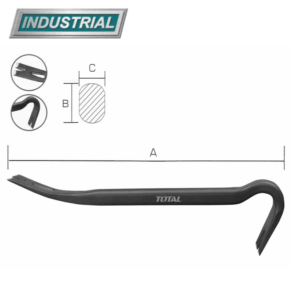 - Профессиональный усиленный лом-гвоздодер 350 мм TOTAL THT431142 широко применяется при строительных и монтажных работах.