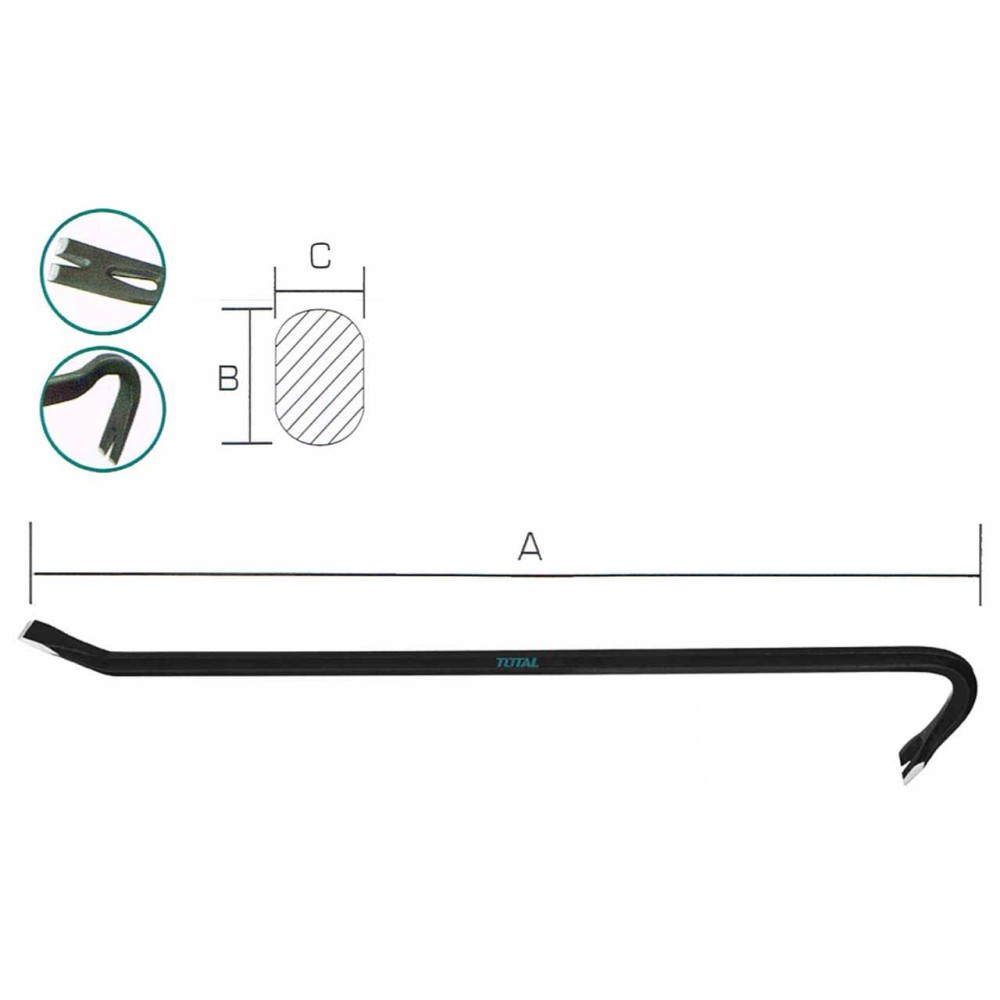 - Профессиональный (industrial) усиленный лом-гвоздодер 900 мм TOTAL THT431362 широко применяется при строительных и монтажных работах.