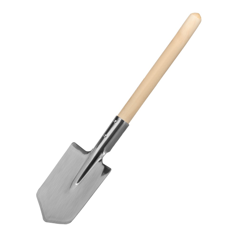 Саперная лопата Сибртех 61439 из нержавеющей стали, размером 153 х 180 х 585 мм, с деревянным черенком, предназначена для выполнения земляных работ небольшого объема. Полотно пятиугольной формы легко входит в землю. Инструмент будет полезен для садово-огородных работ, пригодится в походе или автомобильной поездке.ПреимуществаПрочность и коррозионная стойкость — полотно изготовлено из нержавеющей стали.Надежность — цельновырубная тулейка обеспечивает устойчивость к излому, черенок из лиственных твердых пород древесины высшего сорта выдерживает механические воздействия.Удобная транспортировка — длина лопаты составляет 585 мм, вес — 0,69 кг.