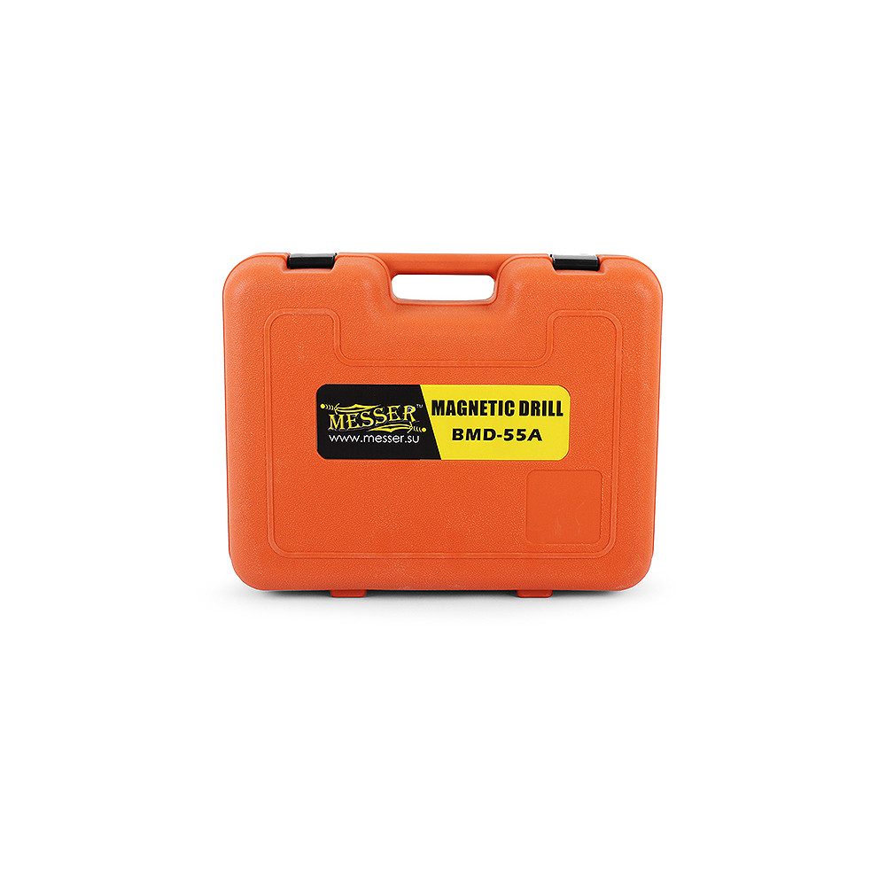 Магнитный сверлильно-резьбонарезной станок MESSER BMD-55A поставляется в удобном для хранения и транспортировки пластиковом кейсе, в комплекте с бачком для СОЖ, тремя съемными рукоятками подачи сверла, страховочным тросом, 3-х кулачковым патроном с ключом и адаптером, защитным кожухом и двумя шестигранными ключами.