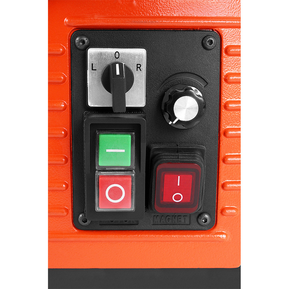 Данный станок оснащен двухскоростным редуктором и имеет две механические скорости, в каждой из которых, используя плавную регулировку, можно точно выставить оптимальные обороты для работы, как при сверлении, так и при нарезании резьбы.