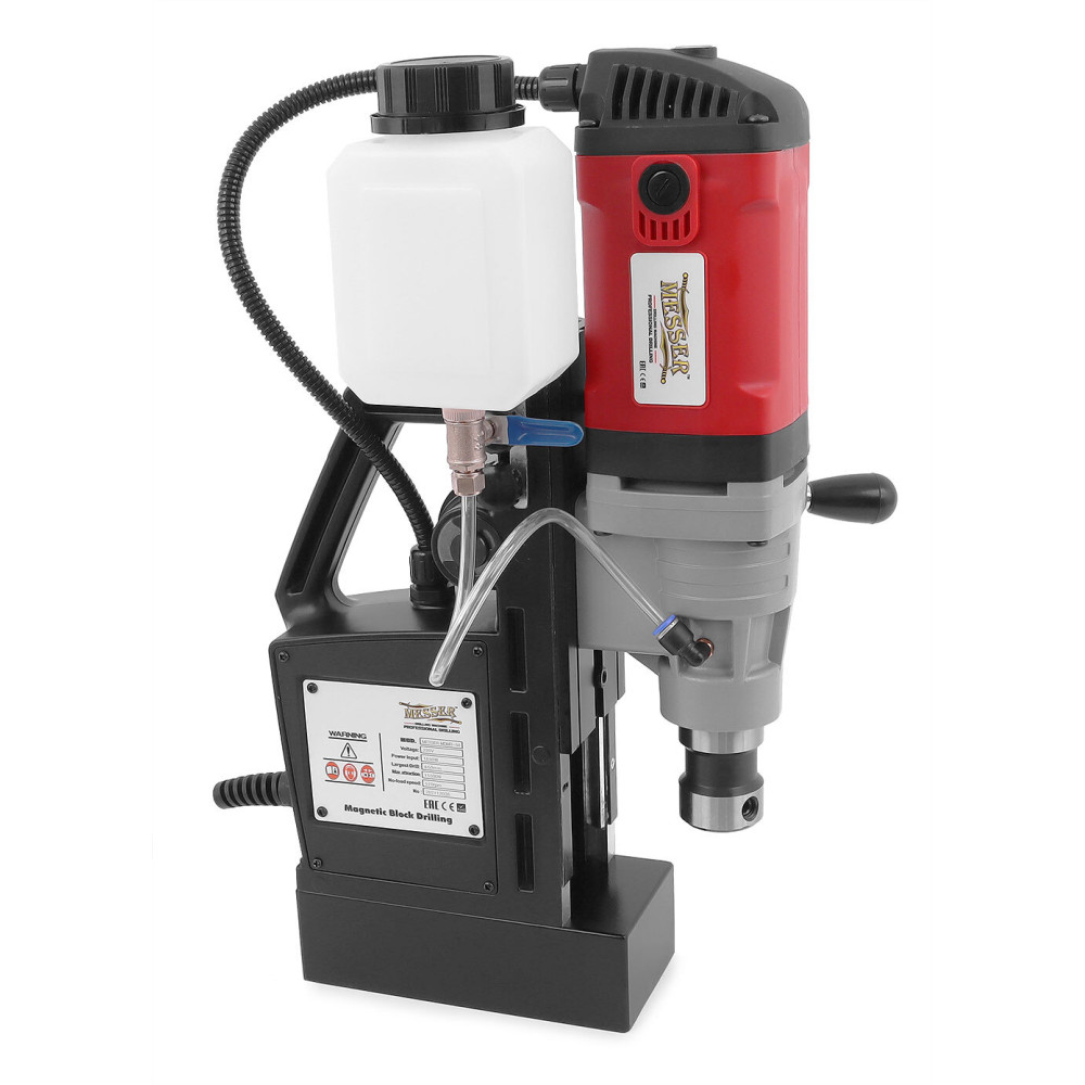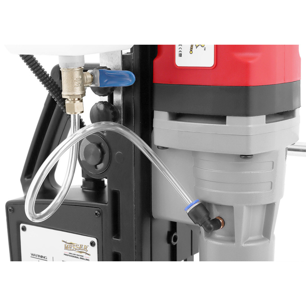 В магнитном сверлильном станке MESSER MDMR-50 использовано минимально количество электронных узлов. Система подачи смазочно-охлаждающей жидкости (СОЖ) в зону сверления позволяет уверенно выполнять работу без перегрузки двигателя и перегрева кольцевых фрез.