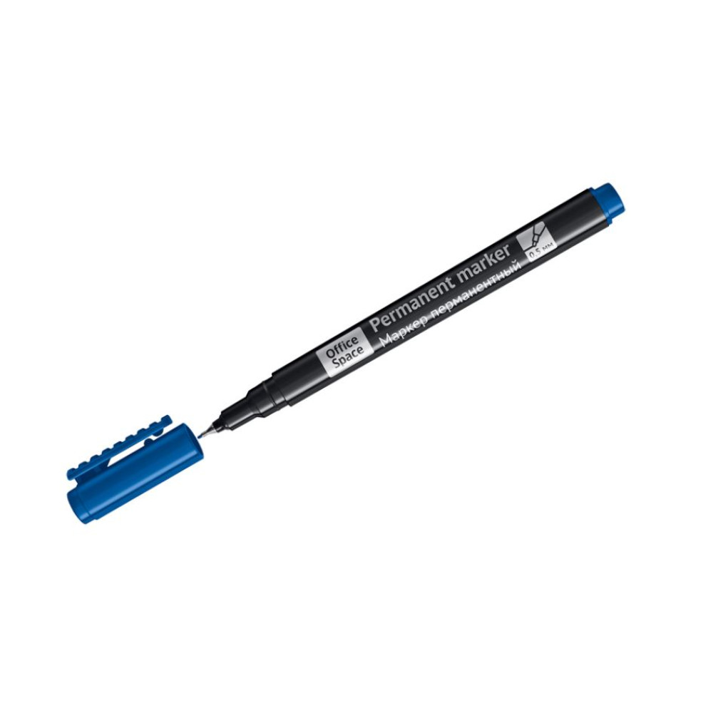Маркер перманентный OFFICESPACE синий (270906) подходит для письма на любых поверхностях. Чернила на спиртовой основе. Плотный колпачок надежно предотвращает высыхание. Цвет колпачка соответствует цвету чернил. Металлический игольчатый пишущий узел обеспечивает тонкую ширину линии 0,5 мм. Подходит для письма на CD/DVD дисках. Длина письма 120-150 м. Длина маркера с колпачком 135 мм, без колпачка 125 мм, диаметр корпуса 10 мм.