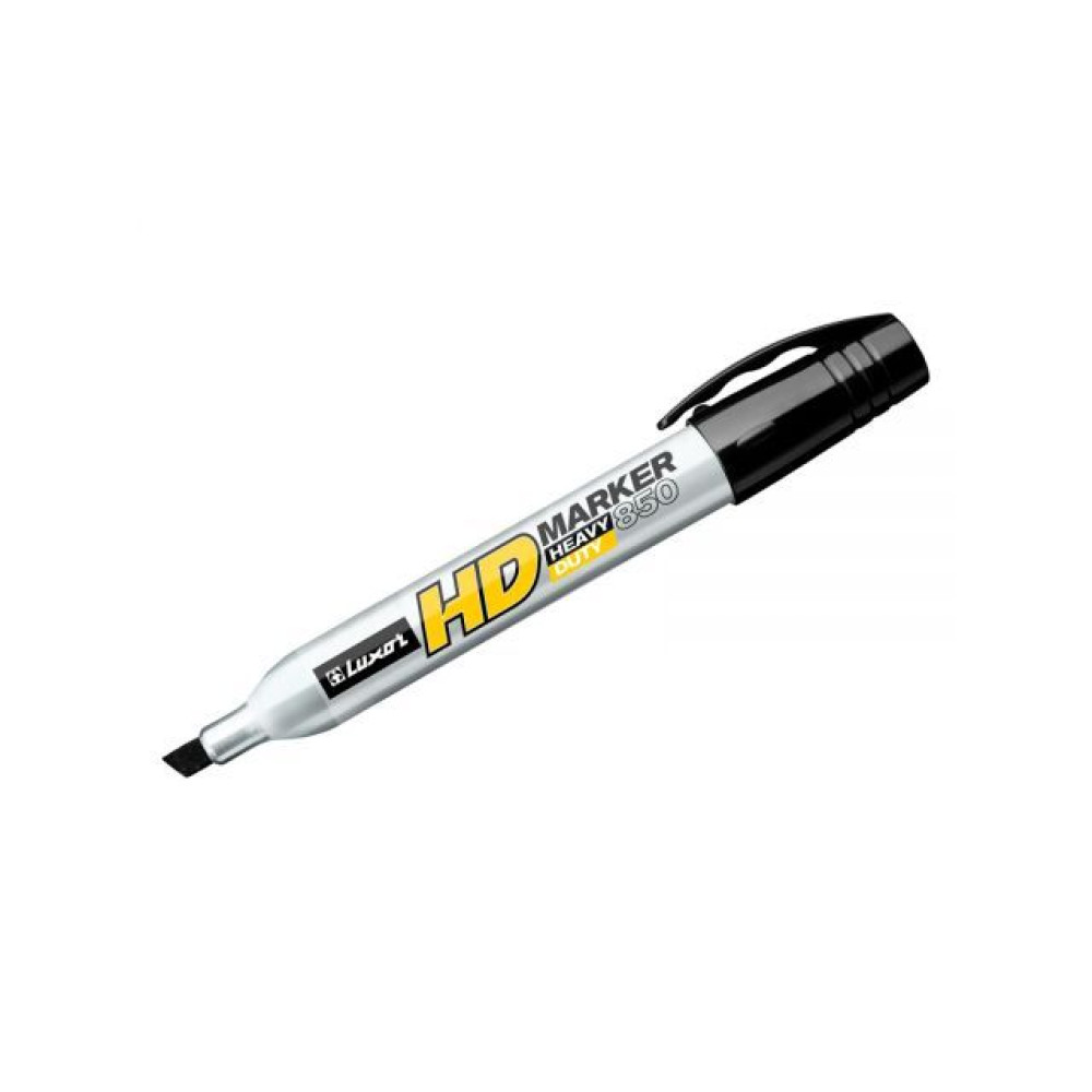 Маркер перманентный LUXOR Heavy Duty 850 черный скошенный (LUXOR3571) предназначен для использования на всех типах производственных поверхностях: металл, масляная поверхность, шероховатая и ржавая поверхность, пластмасса, стекло, керамика и другое. Японский усиленный пишущий узел устойчив к деформации и идеально подходит для маркировки на производстве. Ударопрочный металлический корпус. Чернила на спиртовой основе без ксилола и толуола обладают устойчивостью к различным неблагоприятным внешним факторам, таким как влага, солнечный свет, перепад температуры, поэтому чернила быстро высыхают и не стираются. Скошенный наконечник. Ширина линии письма 3-7 мм. Цвет чернил - черный