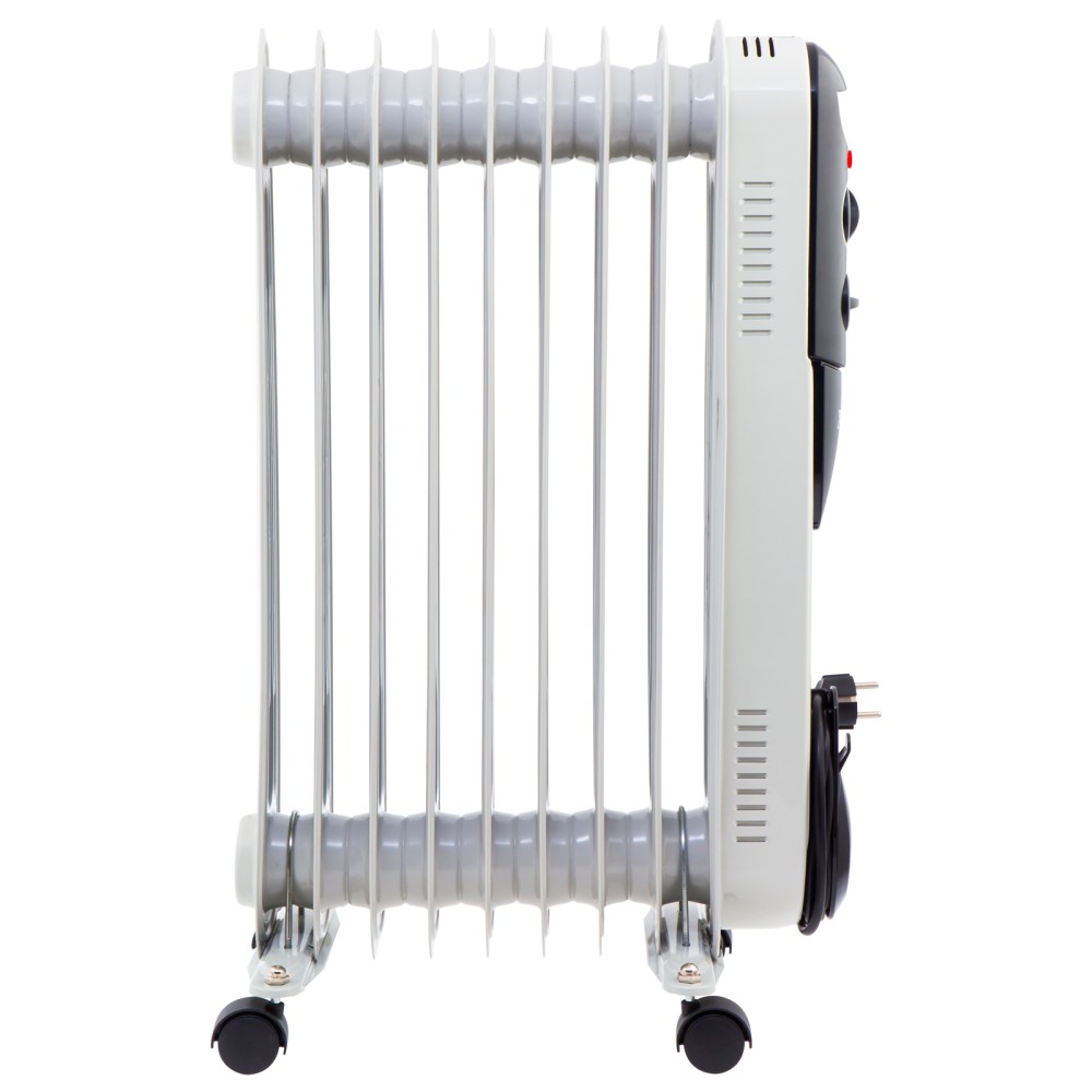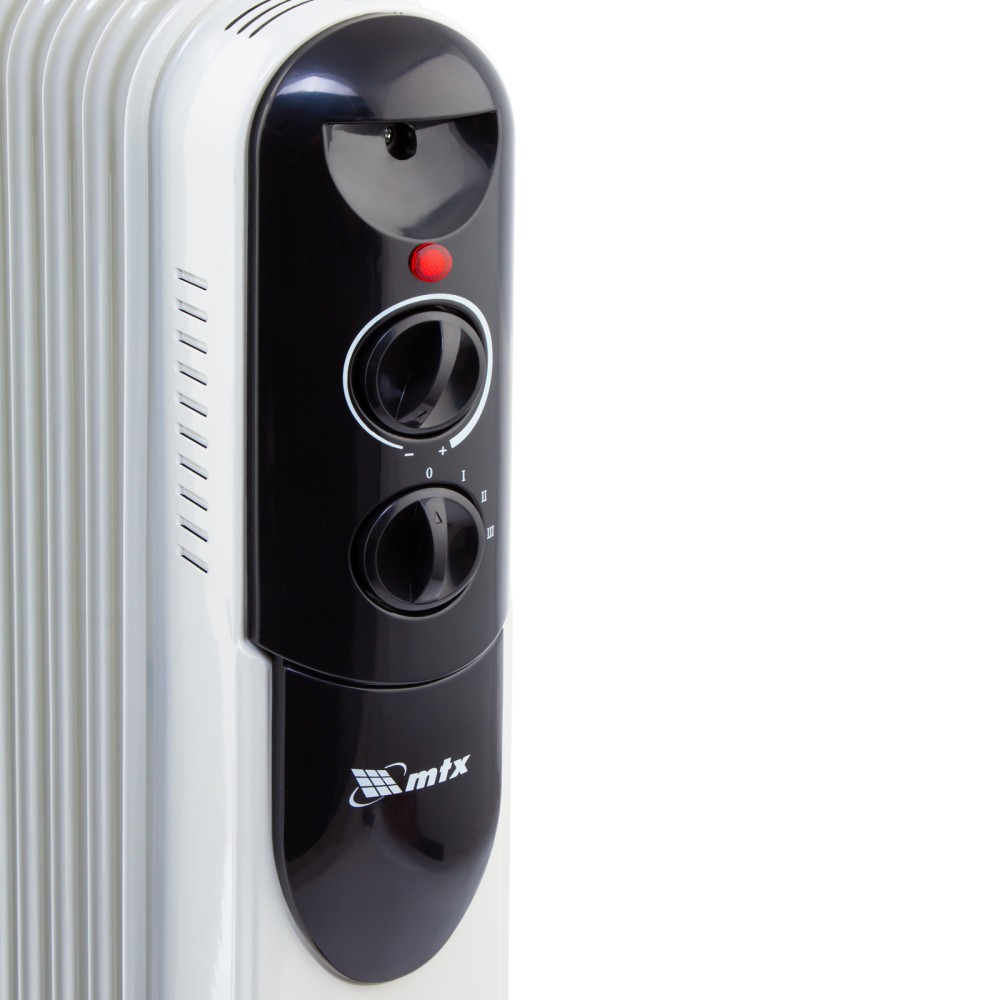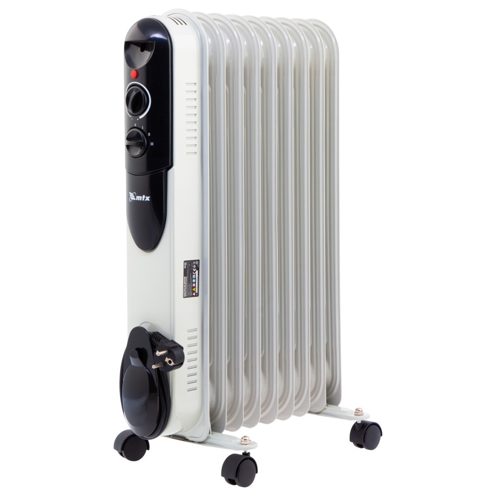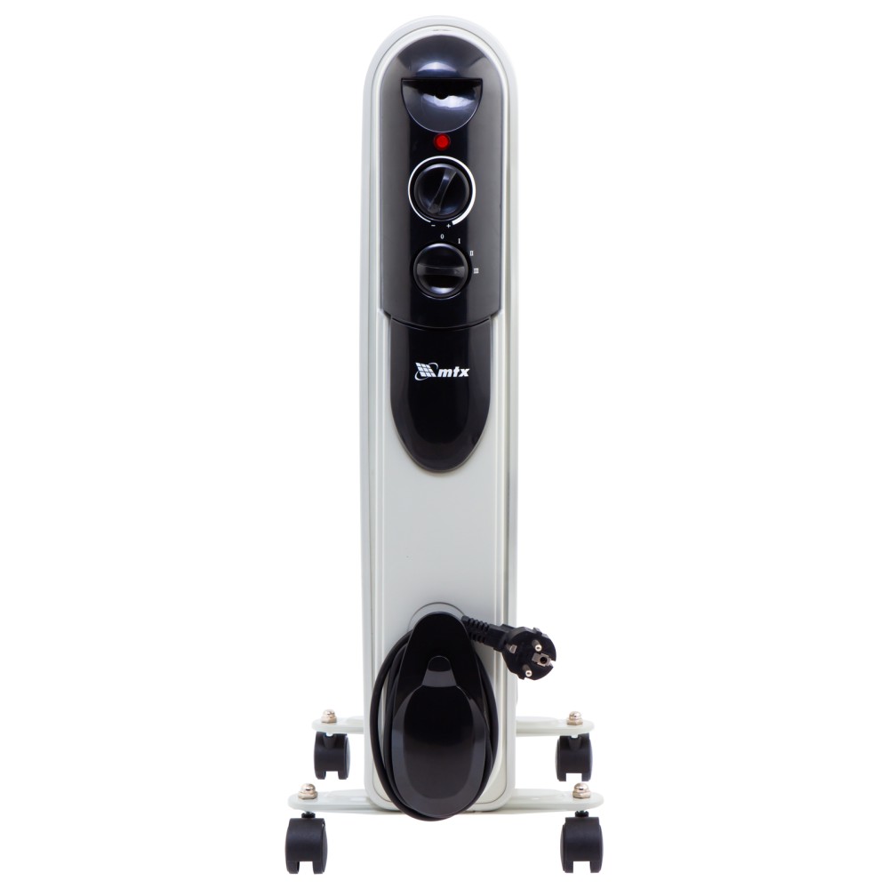 Масляный обогреватель MTX OCH-2000 98303 максимальной мощностью 2000 Вт питается от сети 230 В и предназначен для обогрева кухни, комнаты, офиса или других помещений площадью до 20 кв. м. Нагревательная поверхность с 9 секциями не сушит воздух и не вызывает появление неприятных запахов. Обогреватель работает абсолютно бесшумно, поэтому его использование не вызывает дискомфорт. Преимущества3 режима работы — можно установить мощность нагрева 800, 1200 и 2000 Вт в зависимости от площади помещения.Автоматическое поддержание температуры — механический термостат включает и отключает обогреватель по мере необходимости для достижения заданных параметров работы.Безопасность — система защиты отключает обогреватель при опрокидывании и перегреве.Удобная эксплуатация — о работе обогревателя информирует световой индикатор.Легкое перемещение — обогреватель оснащен 4 колесами, а на корпусе имеется удобная ручка.Продуманное хранение — конструкцией предусмотрен кронштейн для намотки сетевого кабеля и крепления вилки.