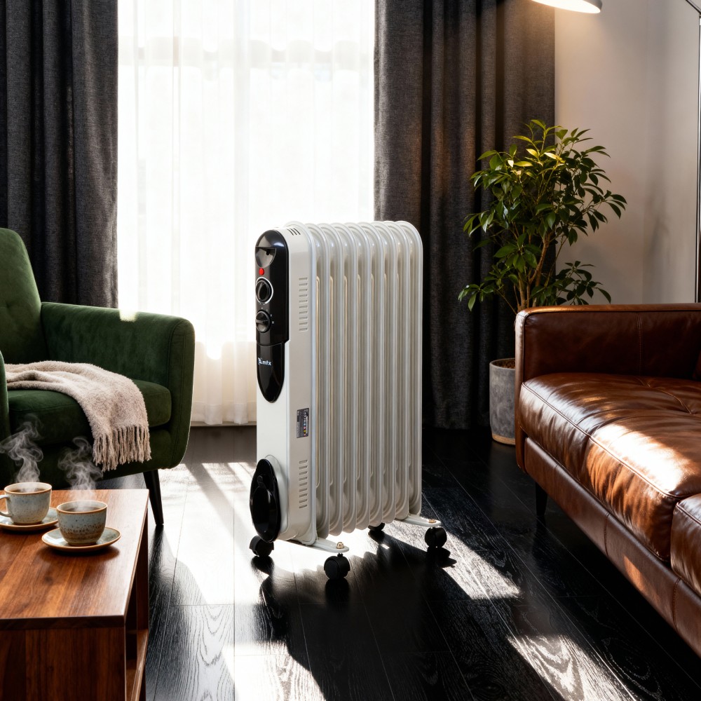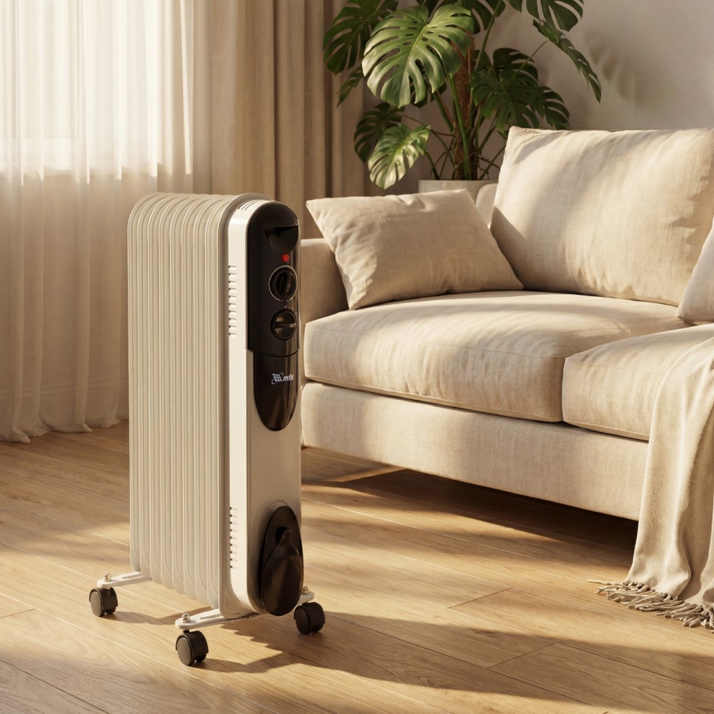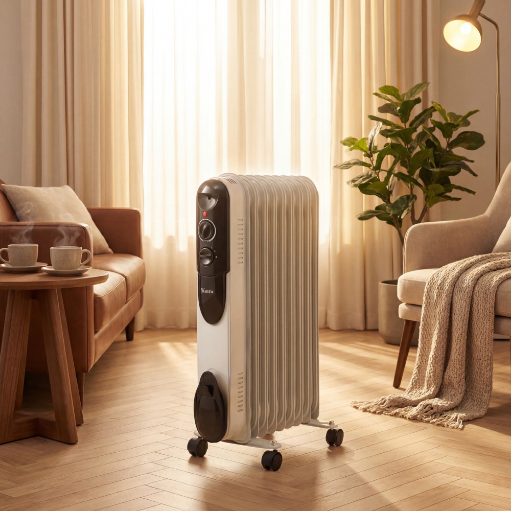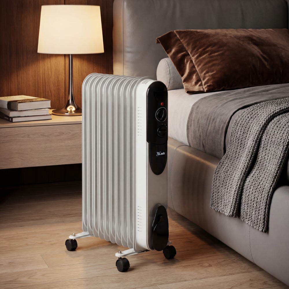 Масляный обогреватель MTX OCH-2000 98303 максимальной мощностью 2000 Вт питается от сети 230 В и предназначен для обогрева кухни, комнаты, офиса или других помещений площадью до 20 кв. м. Нагревательная поверхность с 9 секциями не сушит воздух и не вызывает появление неприятных запахов. Обогреватель работает абсолютно бесшумно, поэтому его использование не вызывает дискомфорт. Преимущества3 режима работы — можно установить мощность нагрева 800, 1200 и 2000 Вт в зависимости от площади помещения.Автоматическое поддержание температуры — механический термостат включает и отключает обогреватель по мере необходимости для достижения заданных параметров работы.Безопасность — система защиты отключает обогреватель при опрокидывании и перегреве.Удобная эксплуатация — о работе обогревателя информирует световой индикатор.Легкое перемещение — обогреватель оснащен 4 колесами, а на корпусе имеется удобная ручка.Продуманное хранение — конструкцией предусмотрен кронштейн для намотки сетевого кабеля и крепления вилки.